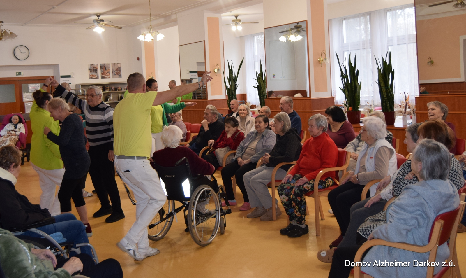 Do naší zrcadlové jídelny zavítaly AMOSky Český Těšín, které přijely potěšit naše klienty svým krásným mažoretkovým vystoupením. Tento taneční soubor, tvořený dětmi a mladými dívkami, rozdává prostřednictvím pohybu, hudby a úsměvů radost všem generacím.