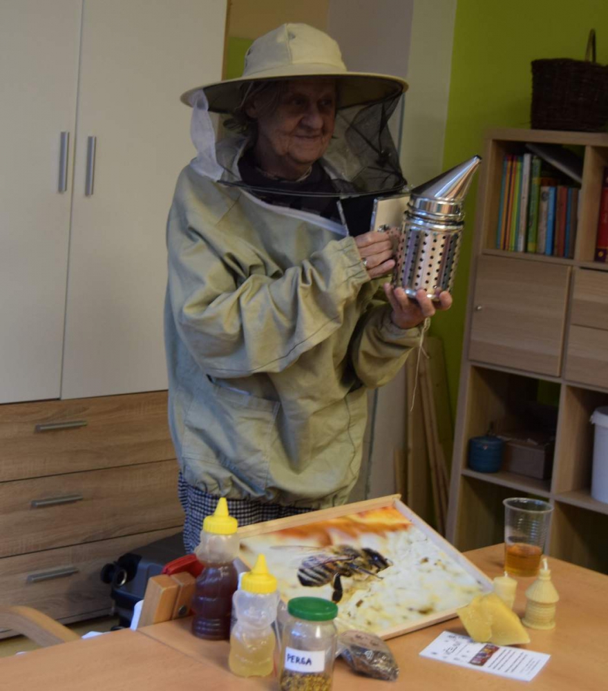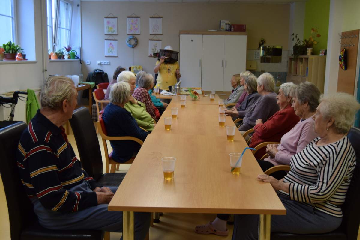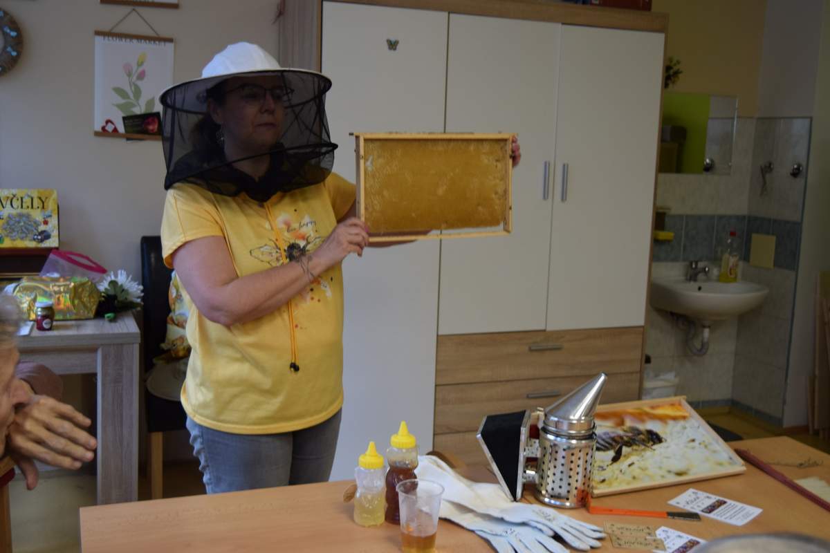 V Domově jsme si užili krásné a voňavé dopoledne na téma včelařství. Paní včelařka Martina Kotalová z projektu Včelaví – co je dobré pro zdraví, nám poutavě přiblížila život včel, jejich význam pro přírodu i člověka a ukázala nám pomůcky, které při své práci používá.