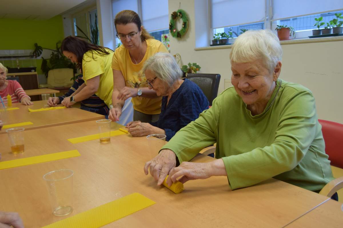 Klienti měli možnost ochutnat přírodní med bez konzervantů a také si vlastnoručně vyrobit svíčky ze včelích plástů. Celé setkání provoněla vůně vosku a medu a na všech bylo vidět, jak moc si tuto smyslovou a tvořivou besídku užívají.