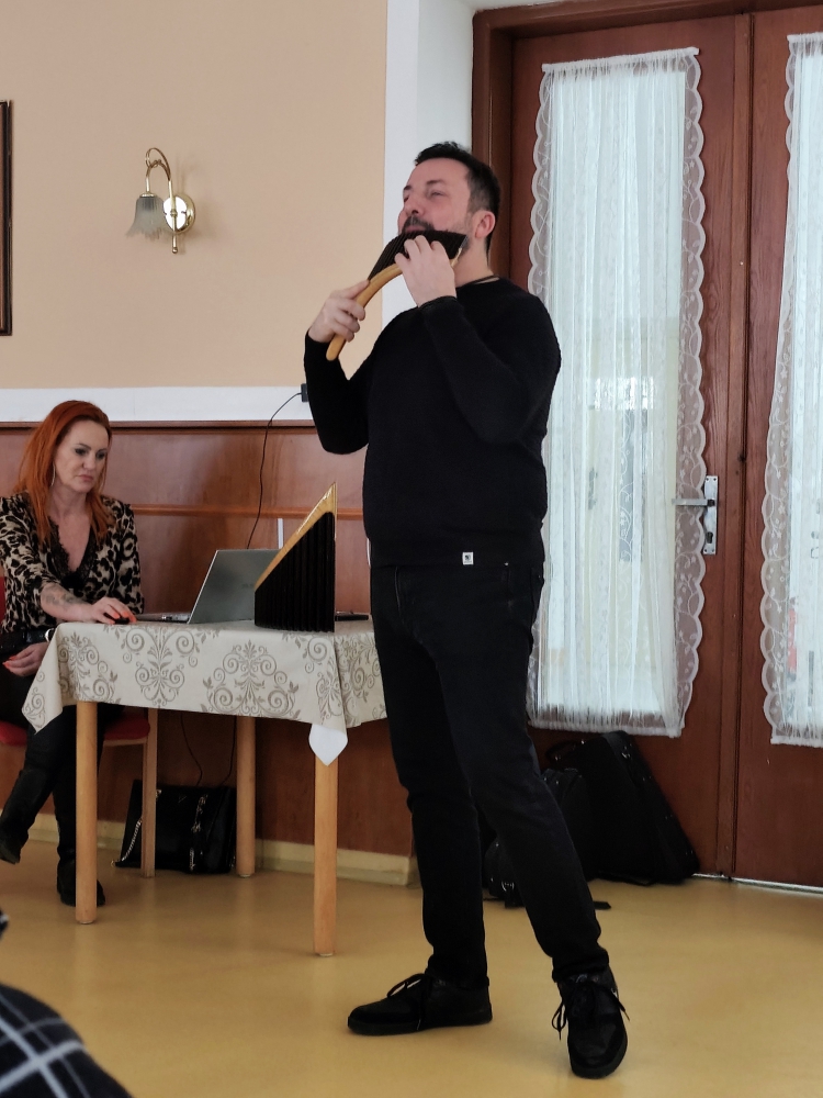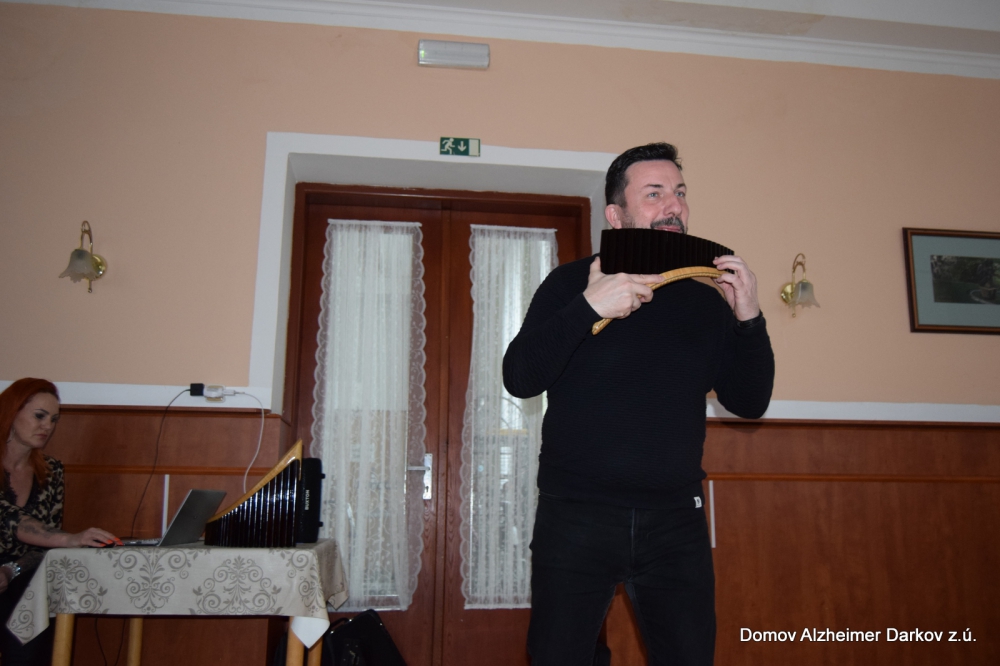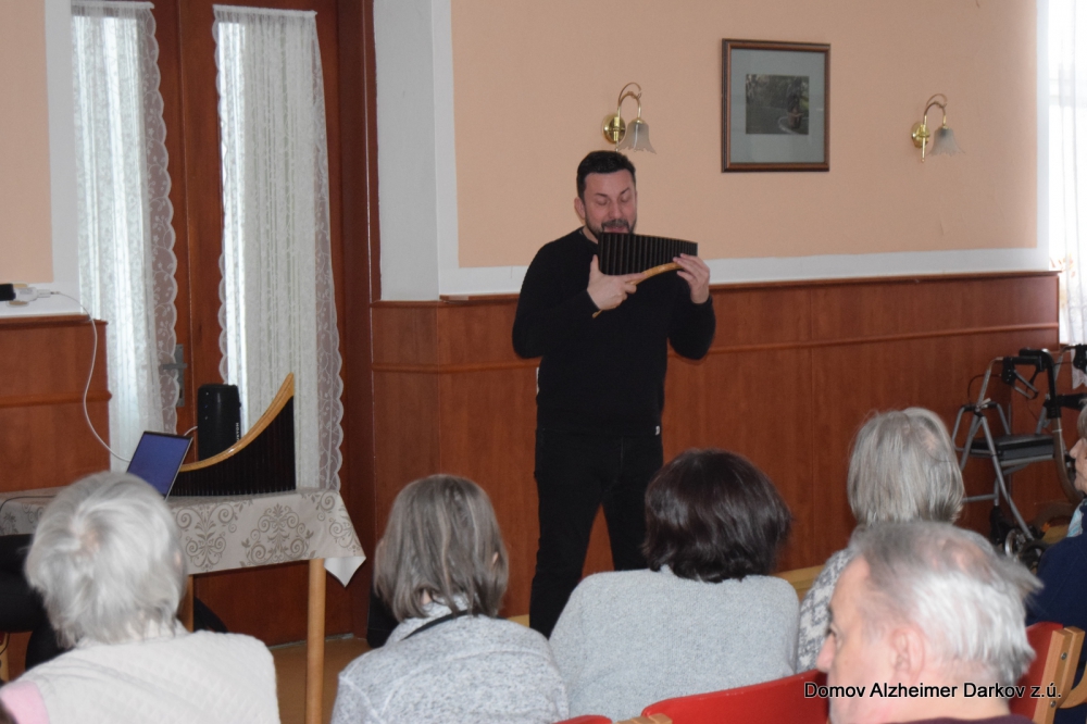 V pátečním odpoledni jsme díky projektu Ježíškova vnoučata prožili krásný hudební zážitek. Hudební dárek zprostředkoval pan Tomeček, který paní Pavlíčkové – naší seniorce – předal koncert na Panovu flétnu spolu s DVD s názvem Čarovná flétna.