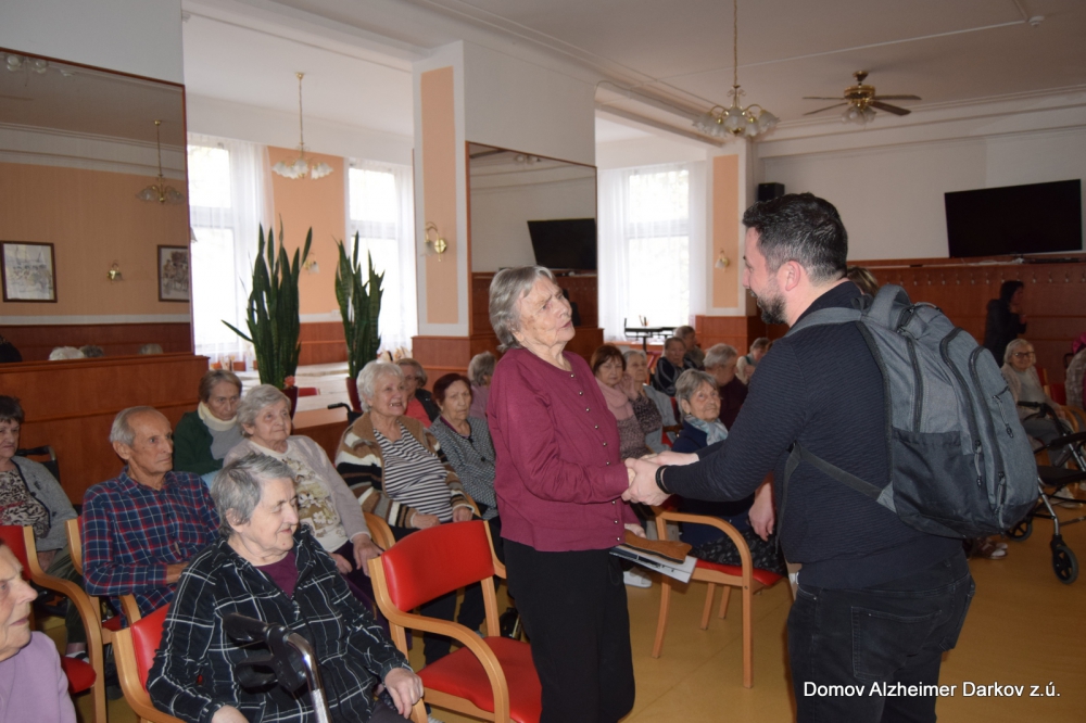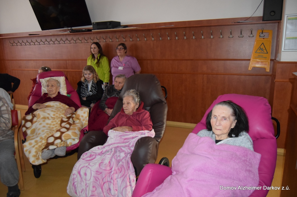 Jemné melodie zaplnily prostor domova a potěšily nejen paní Pavlíčkovou, která si tento zážitek přála, ale také ostatní klienty i zaměstnance. Hudba přinesla klid, radost a výjimečnou atmosféru, na kterou budeme ještě dlouho rádi vzpomínat.