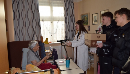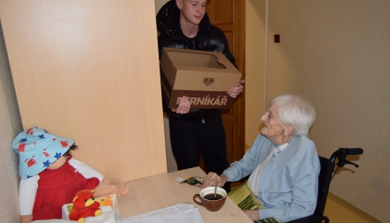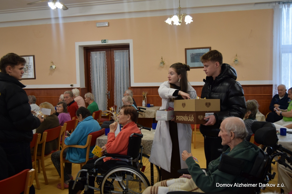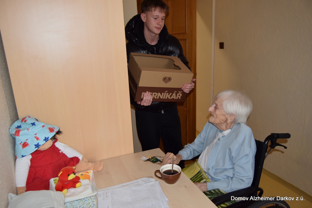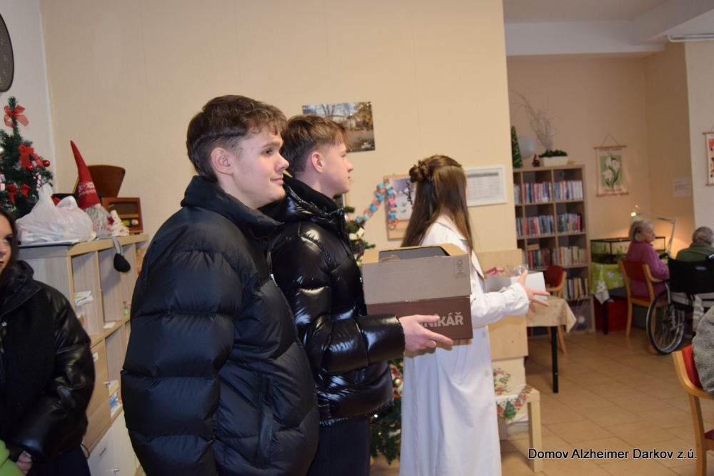 Máme velkou radost, že za námi pravidelně přicházejí mladí lidé, tentokrát ze SOŠ ochrany osob a majetku. Jejich cílem je jediné – udělat našim klientům radost. Ať už milým slovem, malou pozorností nebo jen svou přítomností.