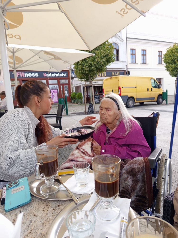 Ty se rozhodly udělat klientkám den ještě krásnější a spontánně je vzaly na projížďku po městě. Pro nás, vedení Domova Alzheimer, to byl nádherný moment – vidět, jak fajn tým máme, který opravdu má srdíčko a přináší radost našim klientům i mimo plánované aktivity.