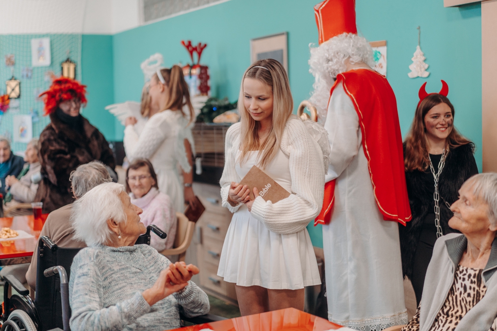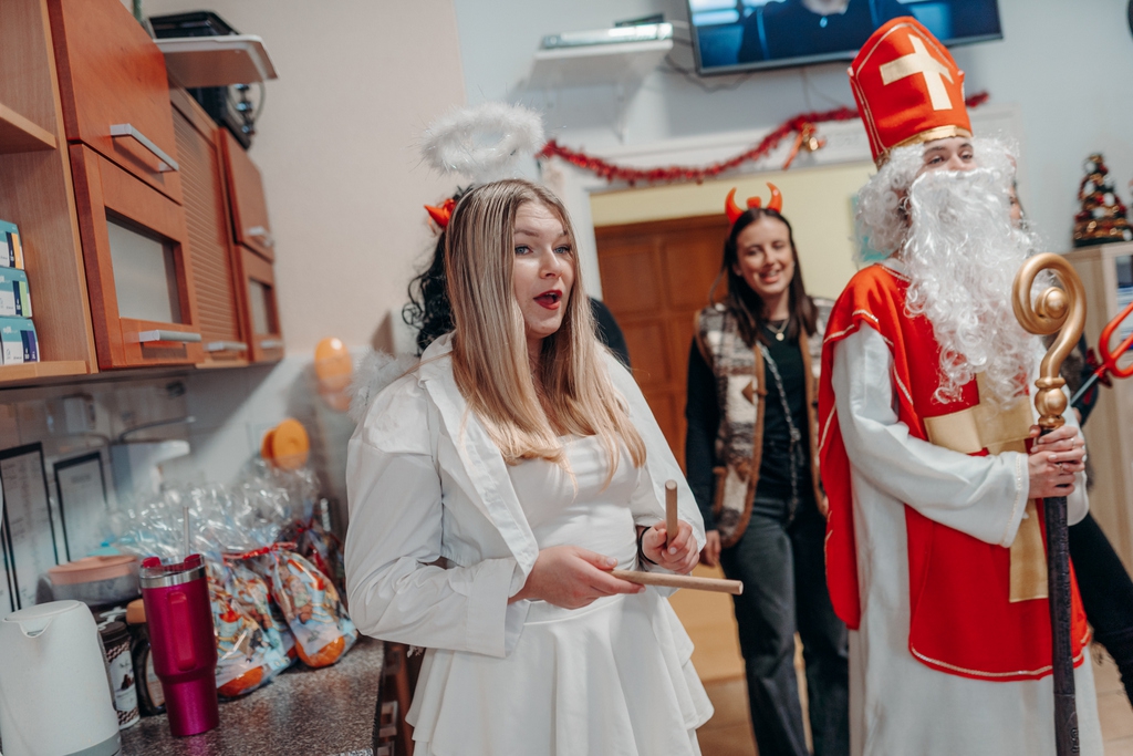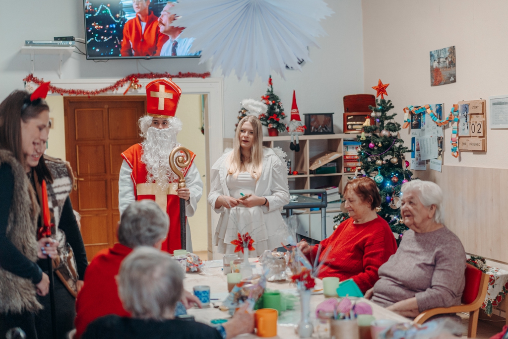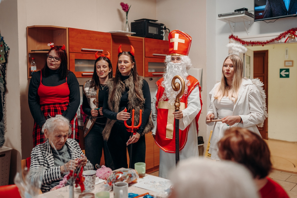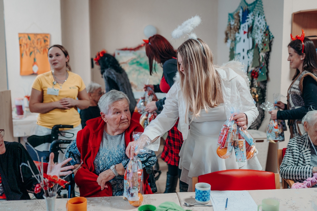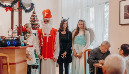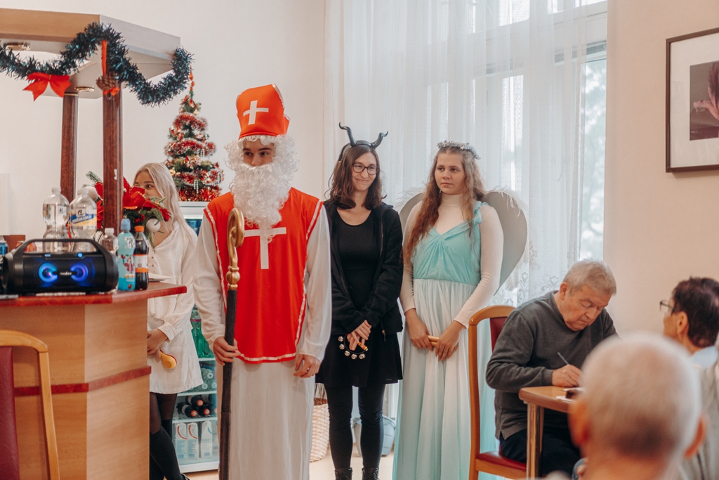 Stejně jako každý rok nás i letos přišli navštívit studenti European College (dříve VOŠ PRIGO) s krásnou mikulášskou nadílkou. V kostýmech čerta, Mikuláše a anděla procházeli pokoj po pokoji a zastavili se u každého našeho seniora, aby předali tradiční radost, úsměv a milé slovo.