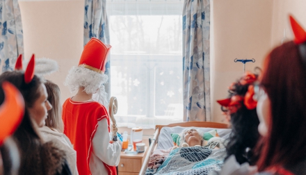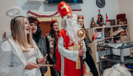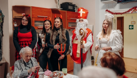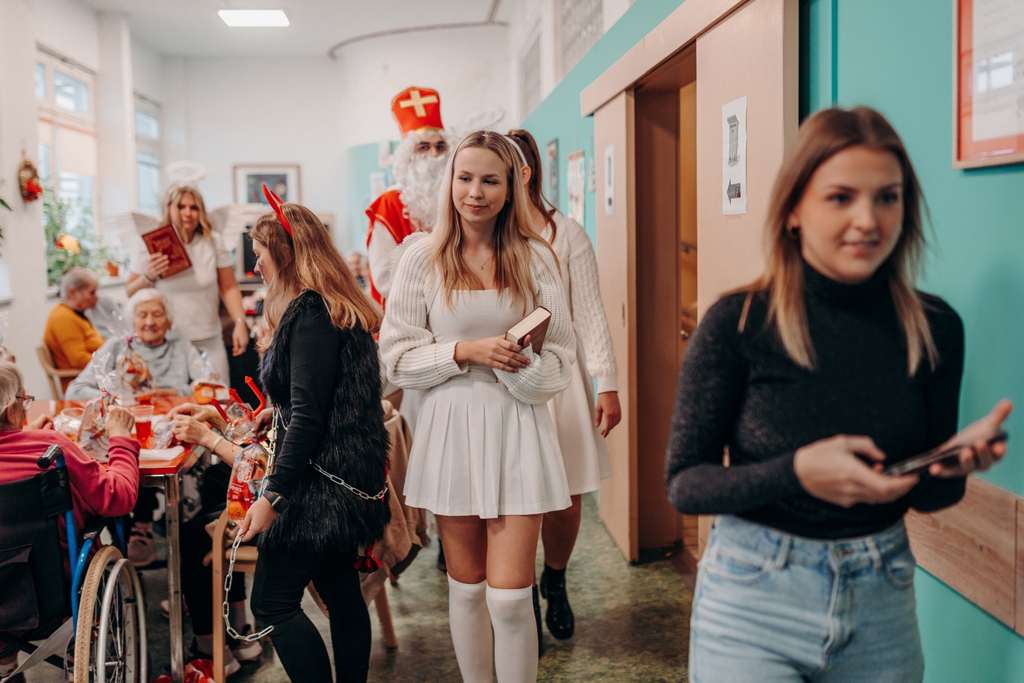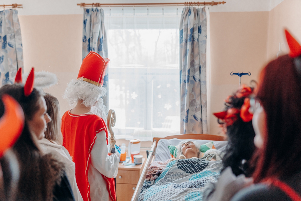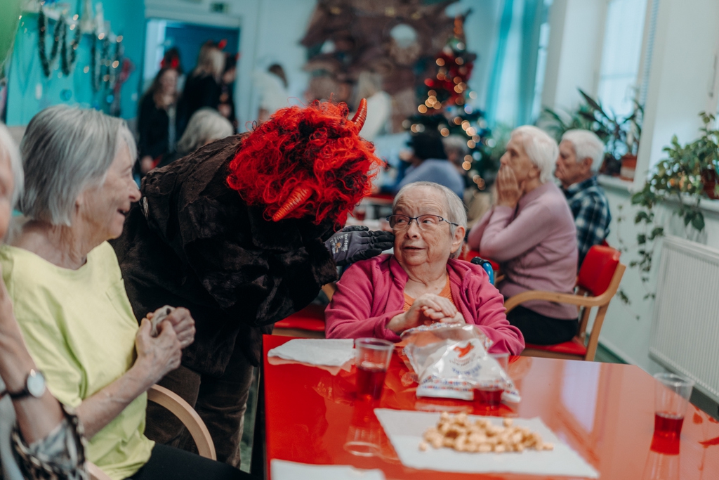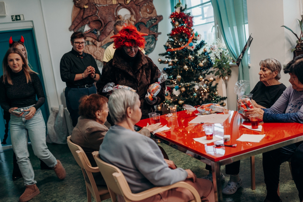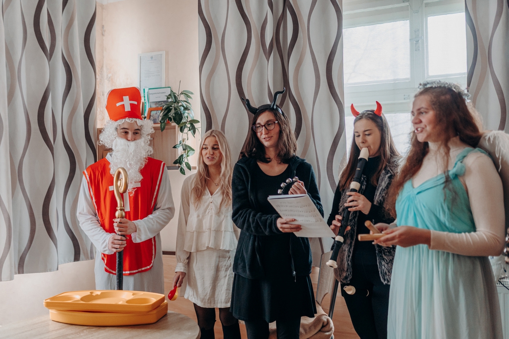 Stejně jako každý rok nás i letos přišli navštívit studenti European College (dříve VOŠ PRIGO) s krásnou mikulášskou nadílkou. V kostýmech čerta, Mikuláše a anděla procházeli pokoj po pokoji a zastavili se u každého našeho seniora, aby předali tradiční radost, úsměv a milé slovo.