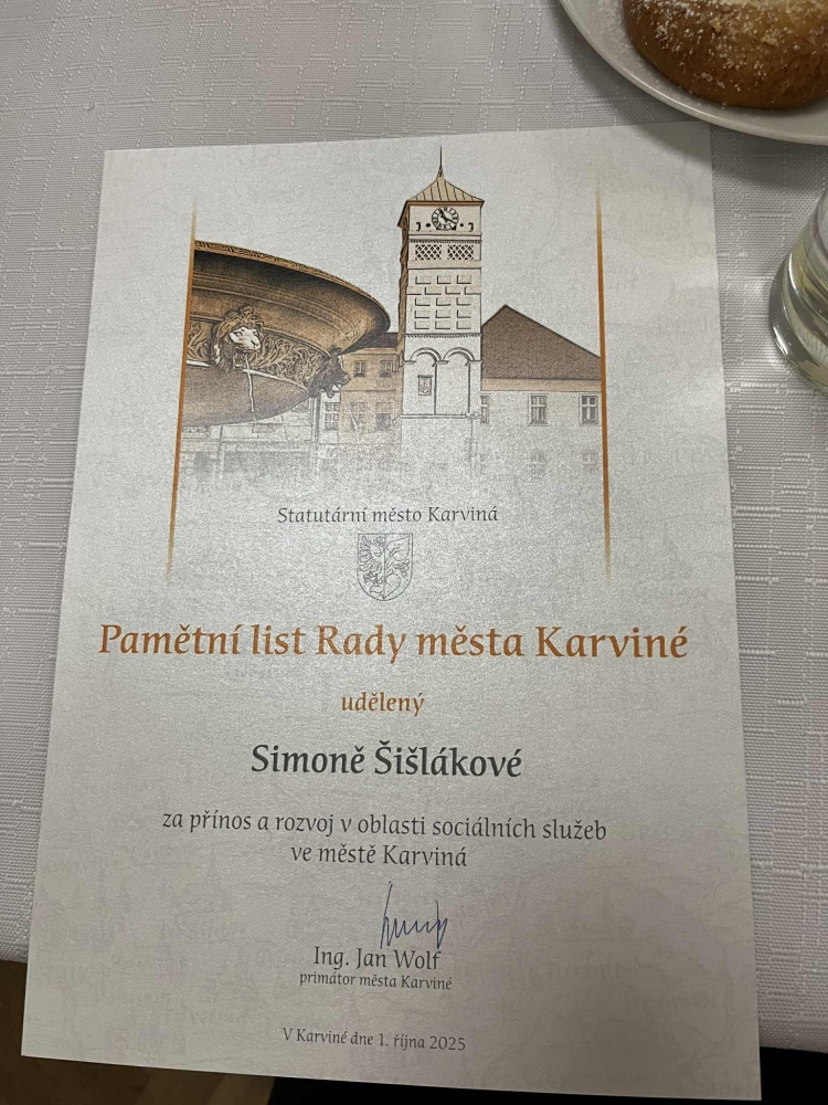 S velkou hrdostí oznamujeme, že oceněnou se stala naše kolegyně paní Simona Šišláková, která se již od roku 2019 věnuje péči o osoby s Alzheimerovou chorobou a dalšími typy demence v Domově Alzheimer Karviná.