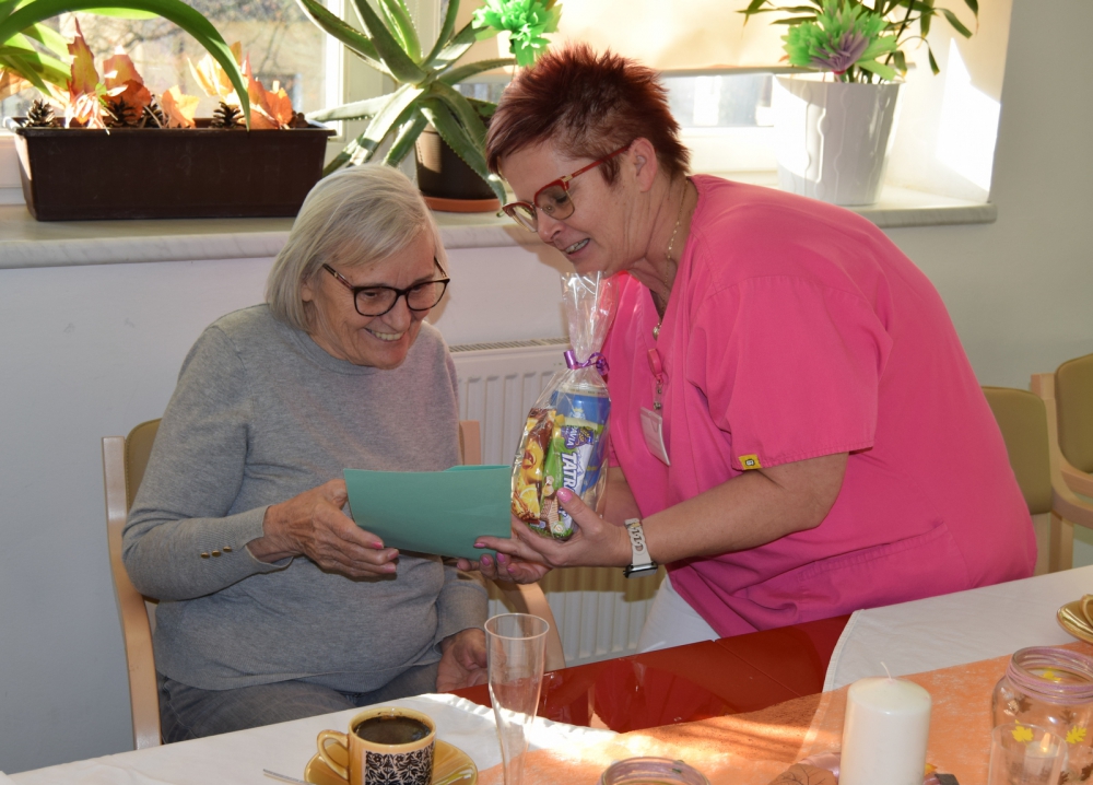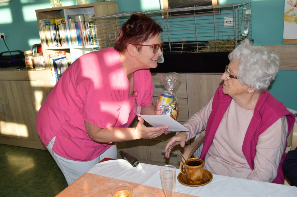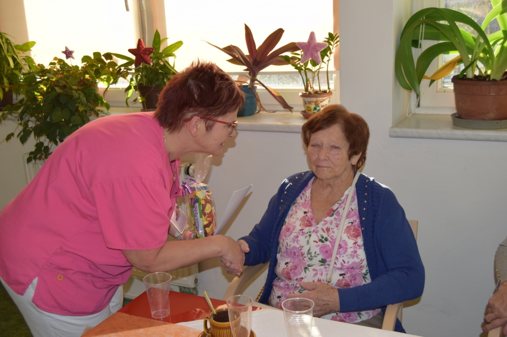 Za celý Domov popřála našim oslavencům paní Kožušníková, nově nastupující vrchní sestra Domova, která všem popřála pevné zdraví, radost a mnoho spokojených dní.