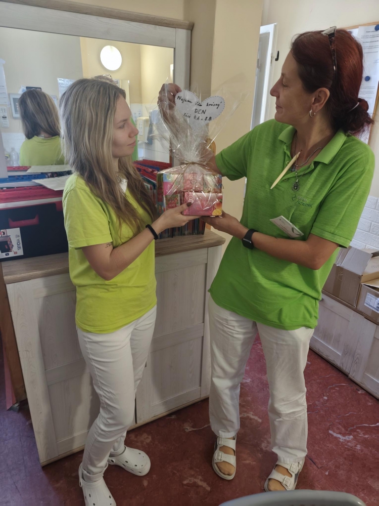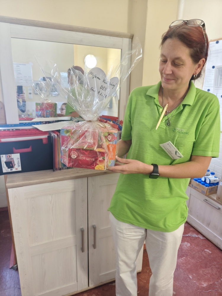 Velké díky patří paní učitelce Mgr. Lucii Bugla, která nám dárky osobně doručila. Paní učitelka se na nás obrátila s upřímným dopisem, ve kterém vysvětlila, že původní setkání museli v červnu zrušit kvůli nemoci dětí. O to více nás těší, že na naše klienty nezapomněli a dárečky přinesli právě k tomuto významnému dni.