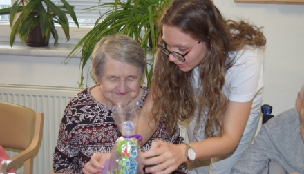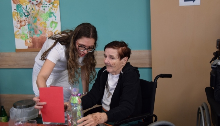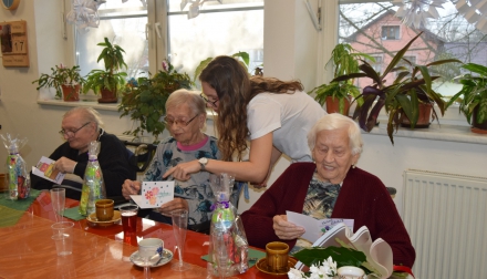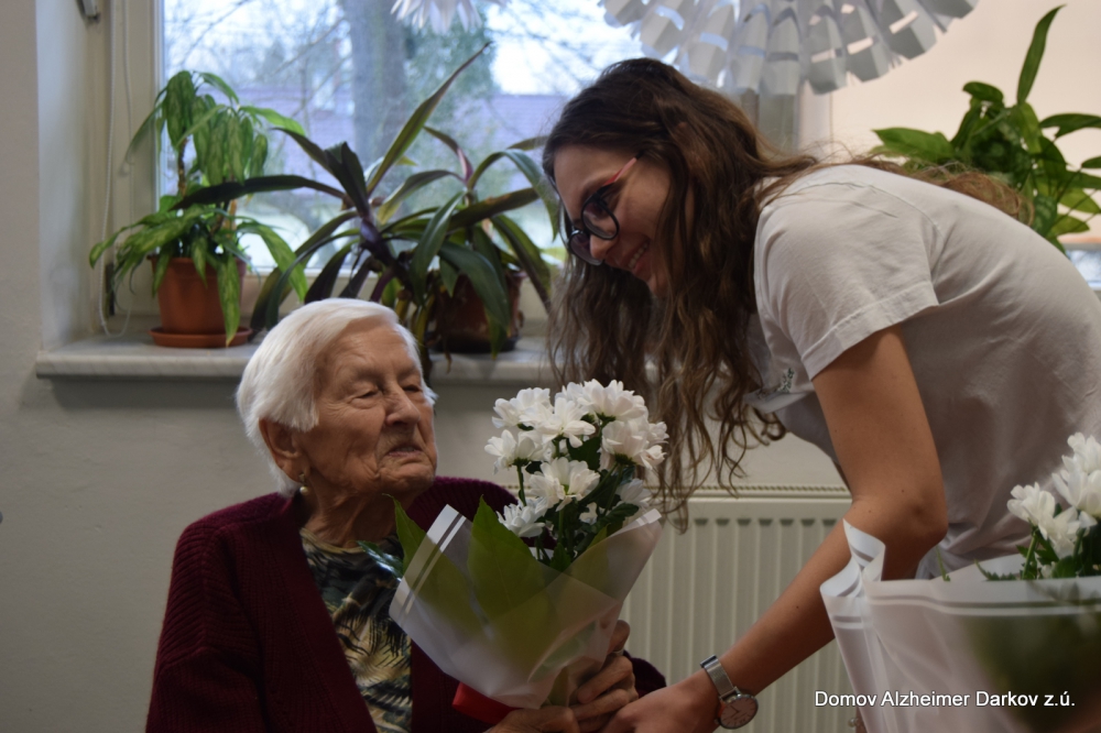 Srdečné přání pevného zdraví, pohody a spokojenosti za celý Domov popřála oslavencům naše nová kolegyně, sociální pracovnice paní Mgr. Markéta Molinová. Děkujeme jí, že se ujala této čestné role a věnovala oslavencům svůj čas i pozornost.