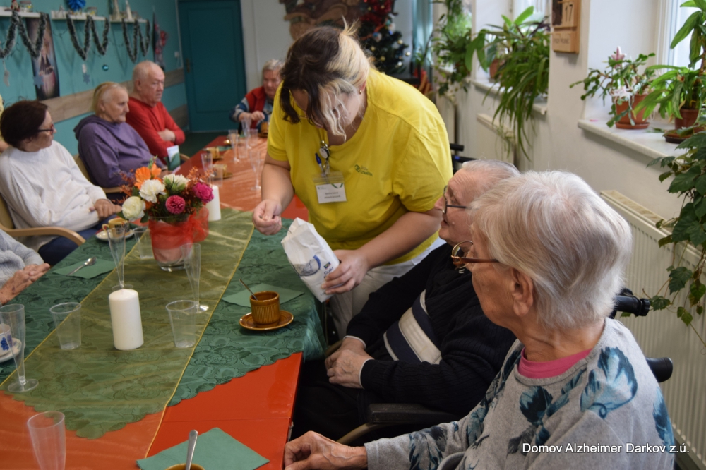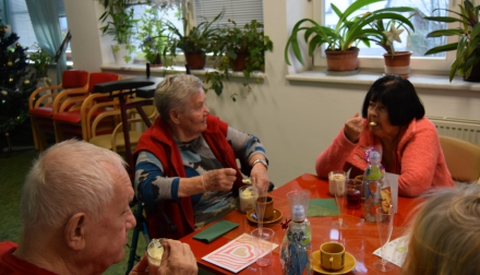 Dne 17. 12. se v našem domově konala oslava narozenin klientů, kteří své jubileum slaví v prosinci. Společné setkání proběhlo v příjemné a slavnostní atmosféře. Jak už bývá zvykem, nechyběla káva ani narozeninový zákusek v podobě oblíbeného tiramisu.
