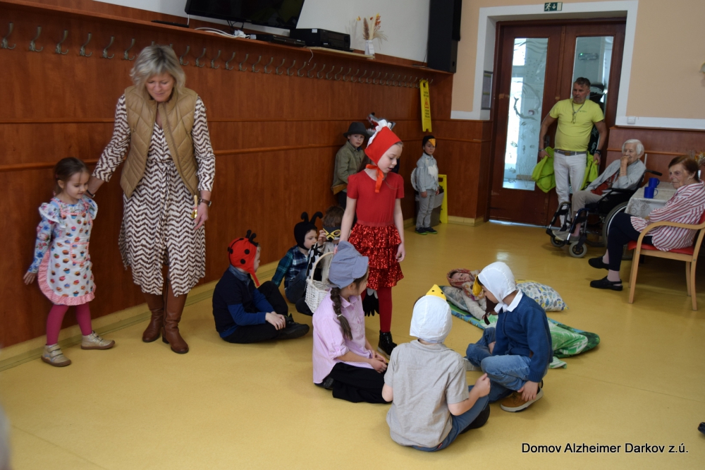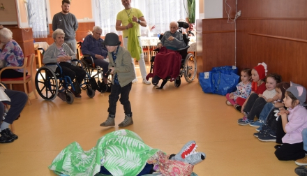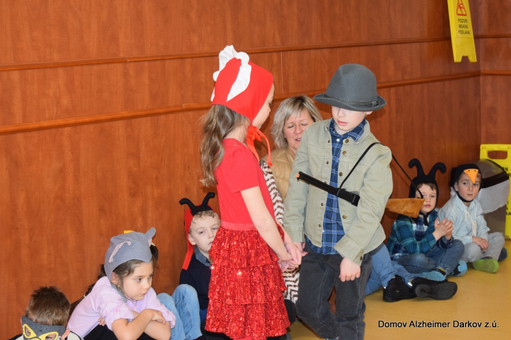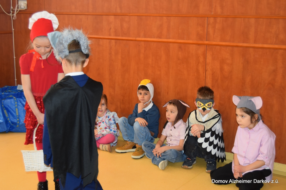 Jedno z „Ježíškových vnoučat“ zajistilo krásné vystoupení dětí z ostravské mateřské školy. Malí návštěvníci přišli se známou pohádkou o Červené karkulce, kterou dramaticky a velmi pečlivě nastudovali. Děti předvedly milé a nápadité vystoupení plné radosti, pohybu i krásných kostýmů. Jejich nadšení a bezprostřednost vykouzlily úsměvy na tvářích všech přítomných seniorů.