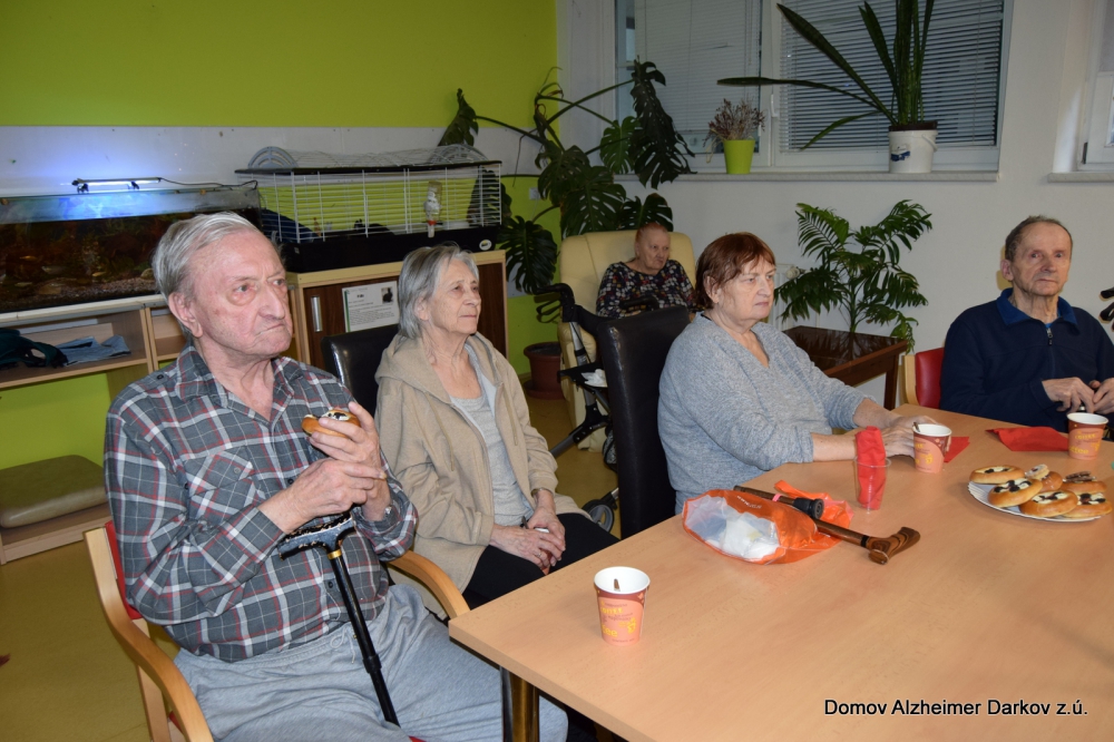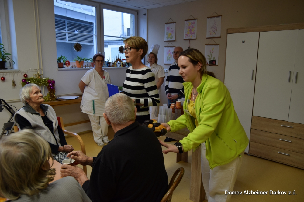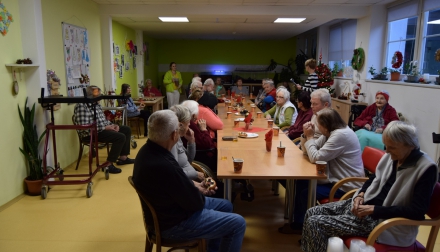 Dne 8. 12. 2025 se v aktivizační místnosti u Elišky v Domově Alzheimer Darkov uskutečnilo společné setkání klientů s vedením Domova. Schůzka proběhla v příjemné atmosféře, s občerstvením.