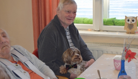 Canisterapie má v našem Domově své pevné místo. Pomáhá zklidnit, navázat kontakt, probudit vzpomínky a přinést pocit bezpečí a lidské blízkosti. Tentokrát však byla navíc obohacena o slavnostní atmosféru, která potěšila nejen naše klienty, ale i celý personál.
