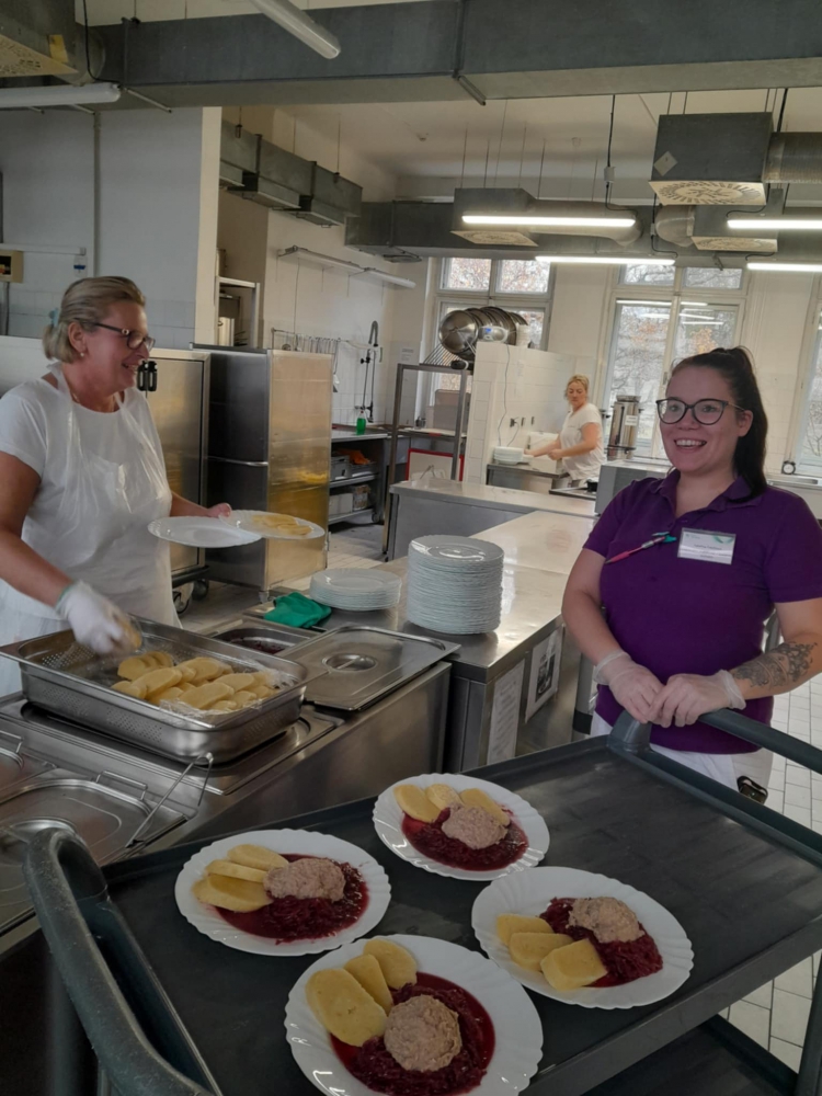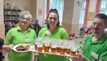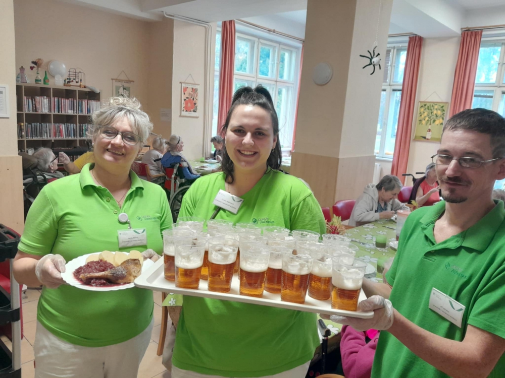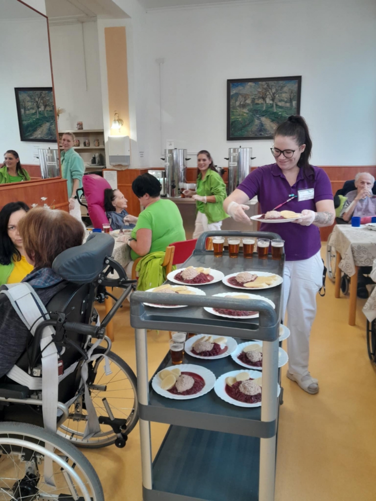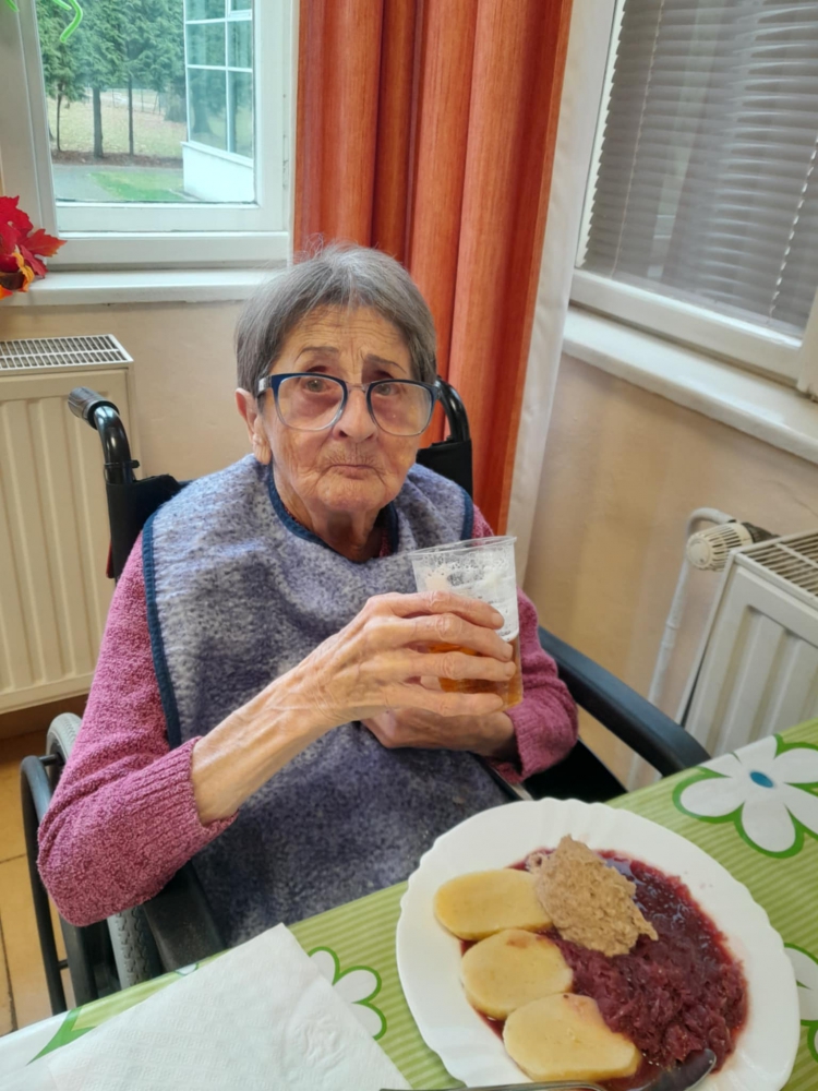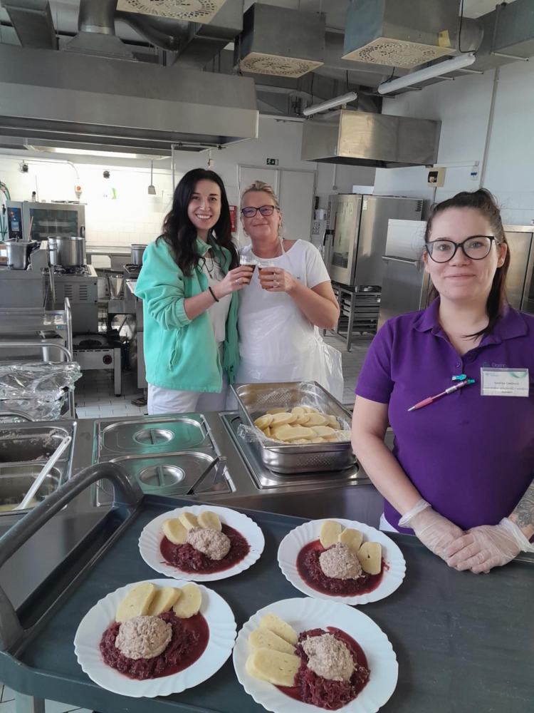 Dnes jsme si opravdu pochutnali! Naši kuchaři připravili výtečný svatomartinský oběd – nechyběla křehká kačení pečínka, červené zelí, výborný bramborový knedlík, závin z kynutého těsta s jablíčky a samozřejmě i sklenka piva. Klientům i zaměstnancům jsme s láskou popřáli dobrou chuť.