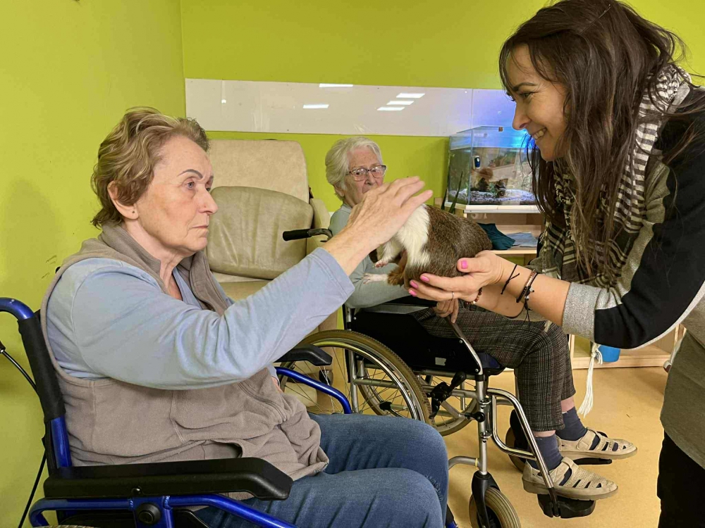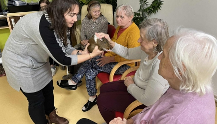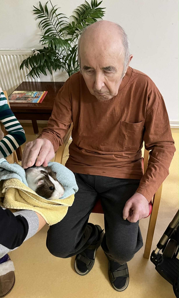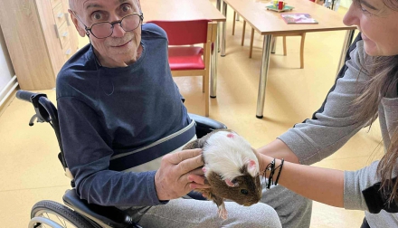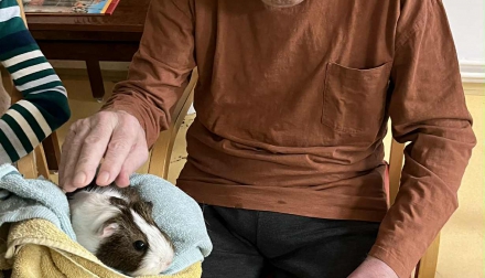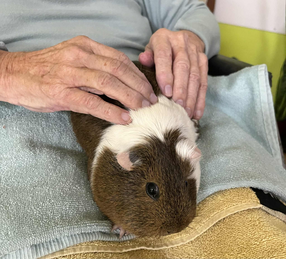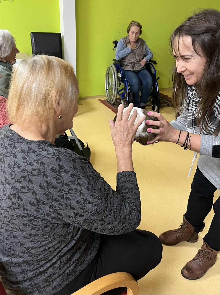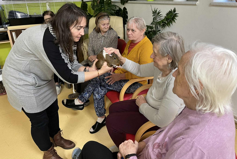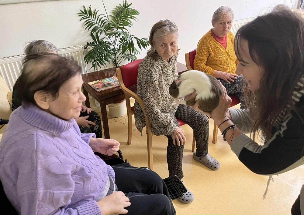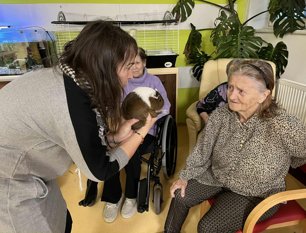 Do našeho Domova zavítala certifikovaná terapeutka, která mezi nás přivedla svá roztomilá morčátka. Tato návštěva přinesla spoustu úsměvů, klidu a pohody – morčátka se nechala hladit, mazlit a tiše pobrukovala, což na všechny působilo velmi uklidňujícím dojmem.
