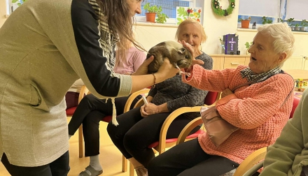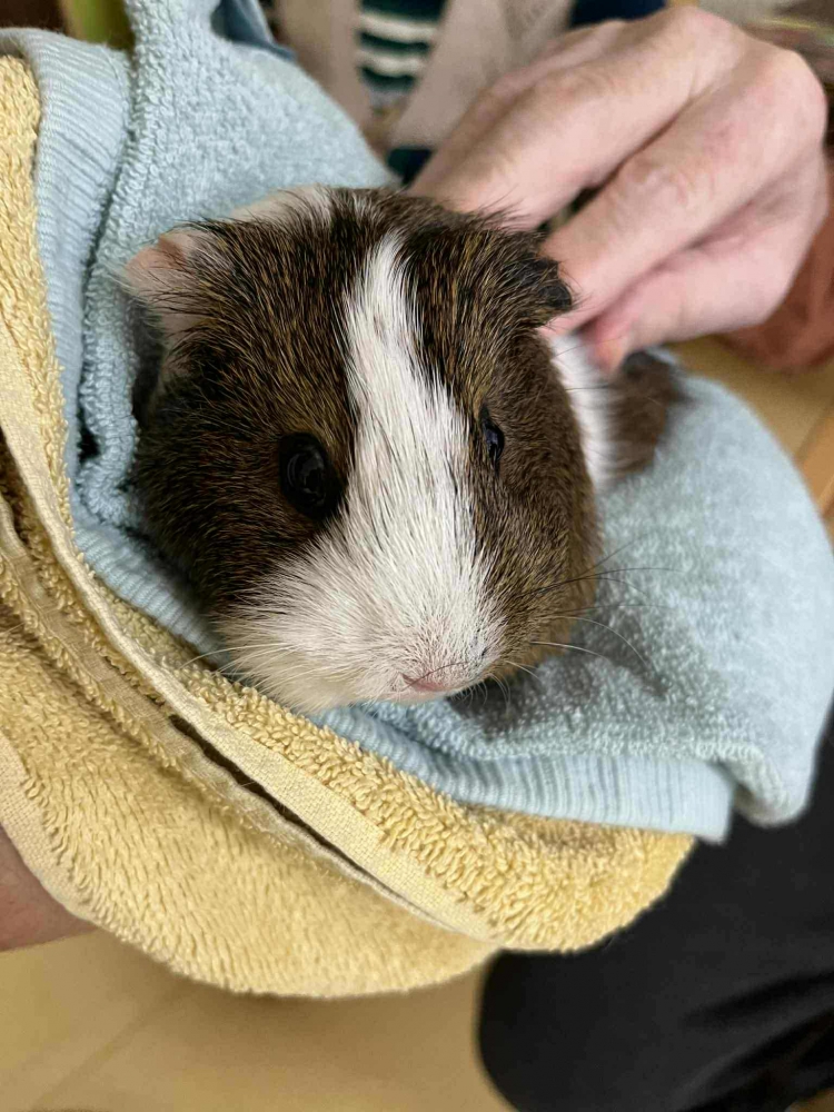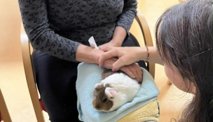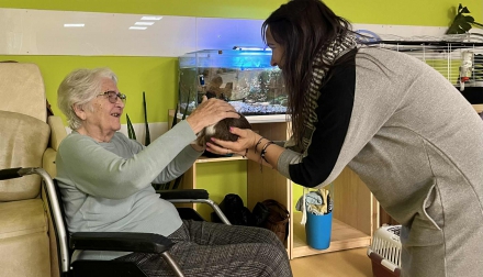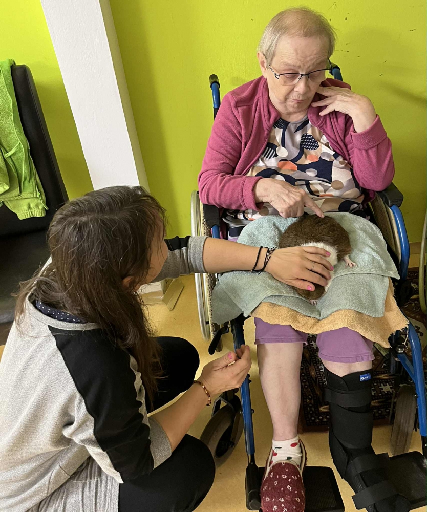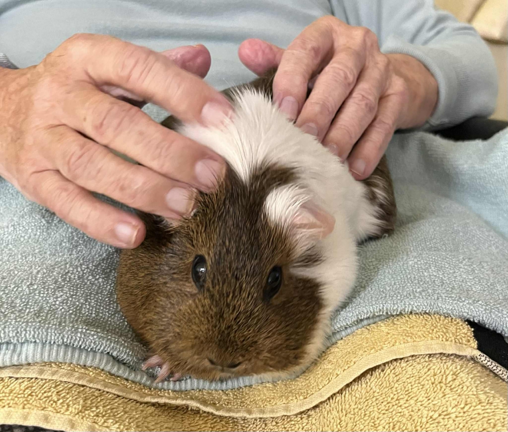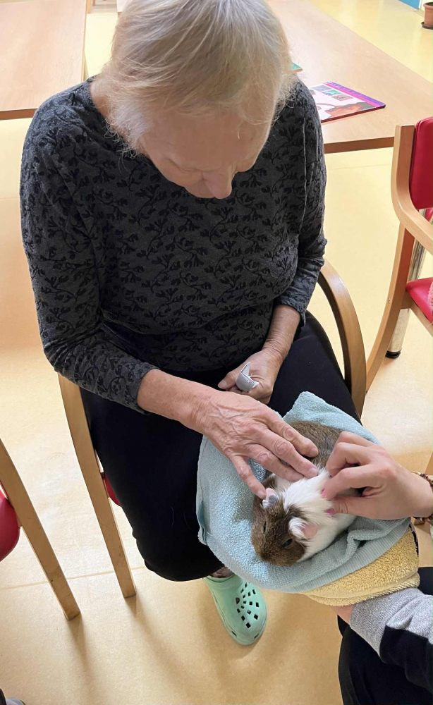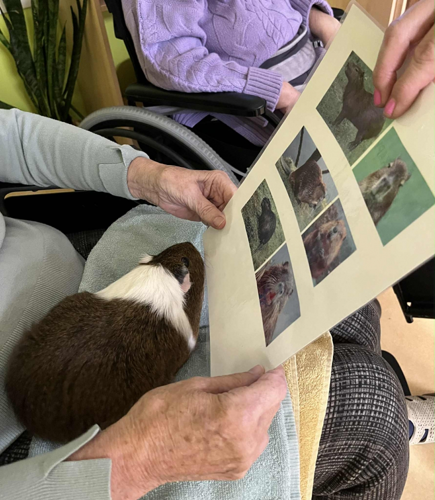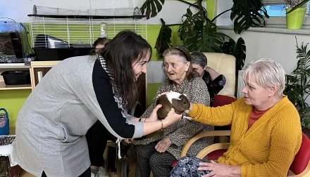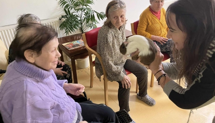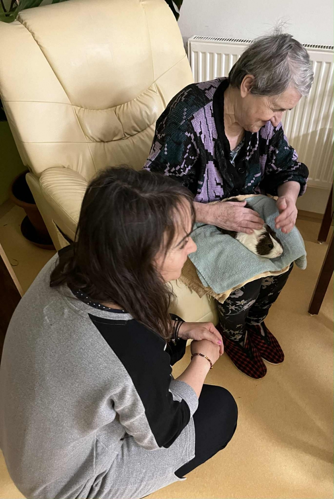 Do našeho Domova zavítala certifikovaná terapeutka, která mezi nás přivedla svá roztomilá morčátka. Tato návštěva přinesla spoustu úsměvů, klidu a pohody – morčátka se nechala hladit, mazlit a tiše pobrukovala, což na všechny působilo velmi uklidňujícím dojmem.
