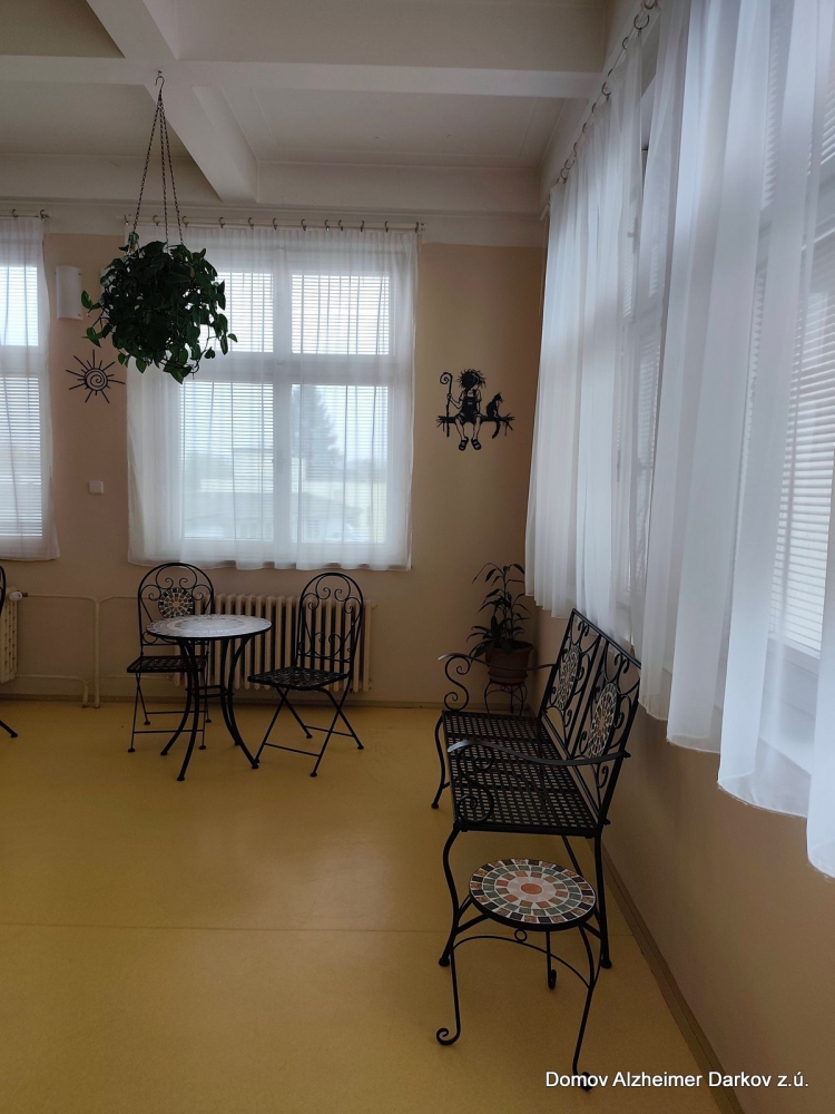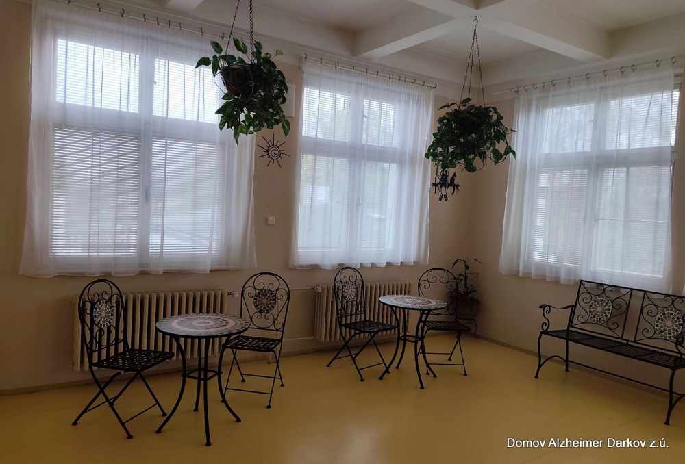 Domov Alzheimer Darkov disponuje rozlehlými společnými prostory, které využíváme pro setkávání klientů a aktivizační činnosti. Obrovskou devizou Domova je krásná zahrada s terasou, která je součástí lázeňského parku.