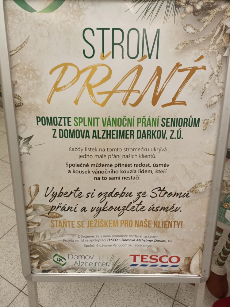 Na stromě v obchodním domě TESCO byla umístěna vánoční přání našich klientů a díky štědrosti veřejnosti se podařilo splnit všechna z nich.Dnes jsme si z této akce odvezli tři nákupní košíky plné dárků, které v následujících dnech potěší naše klienty a zpříjemní jim vánoční čas. Velké poděkování patří Karviňákům, také paní ředitelce TESCO a jejím kolegyním za organizaci této krásné vánoční akce. Děkujeme všem dárcům, kteří se zapojili a přispěli k její úspěšné realizaci.
