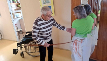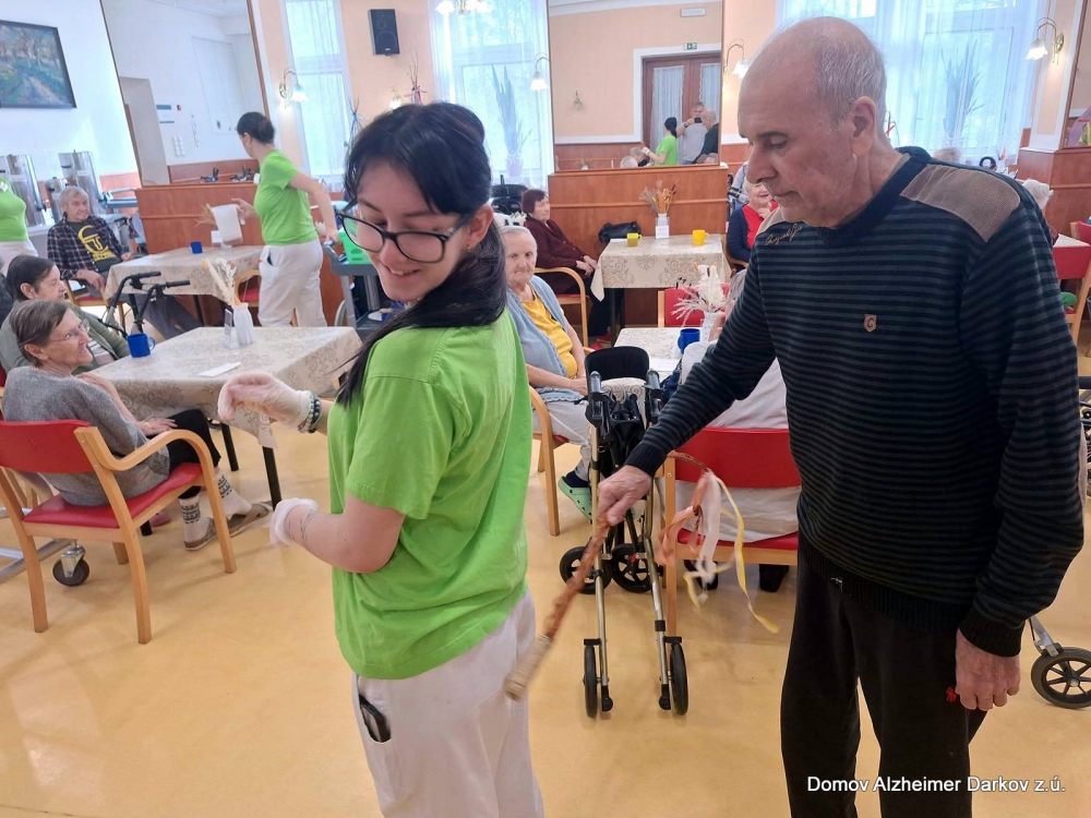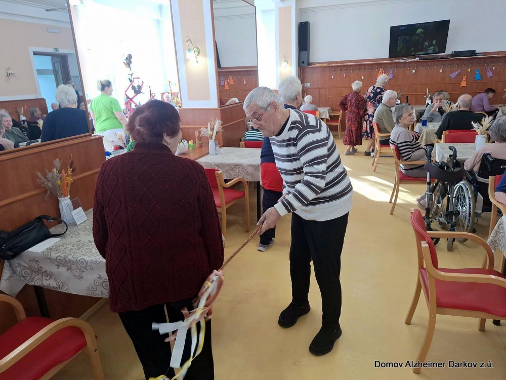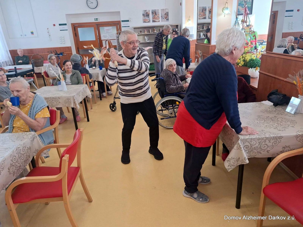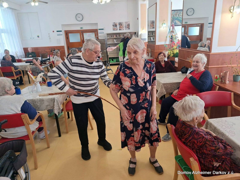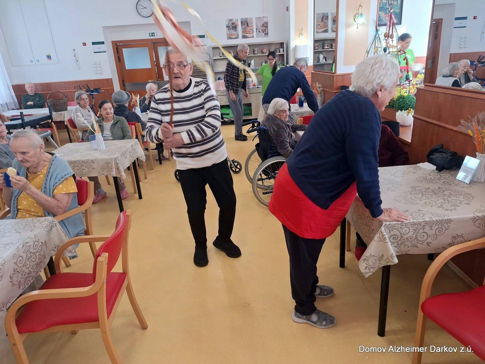 Velikonoční pondělí jsme v našem Domově prožili v duchu tradičních zvyků, radosti a společného setkávání. Muži z řad klientů i zaměstnanců se chopili pomlázek a s nadšením vyrazili „vyšvihat“ všechny dámy – klientky i kolegyně.