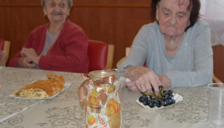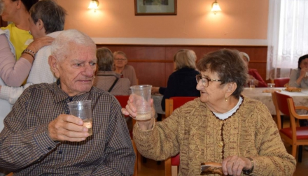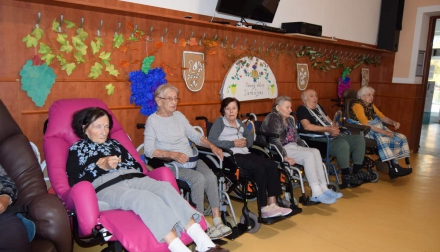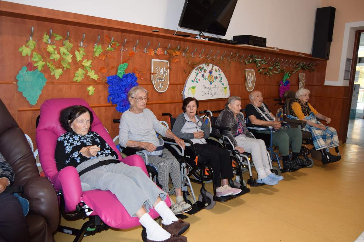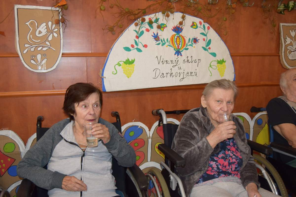 Dne 16. října se z našeho Domova nesla veselá nálada, smích a tóny lidové muziky, která zněla ze zrcadlové jídelny. Slavili jsme totiž vinobraní – tradiční podzimní svátek, který k tomuto období neodmyslitelně patří.