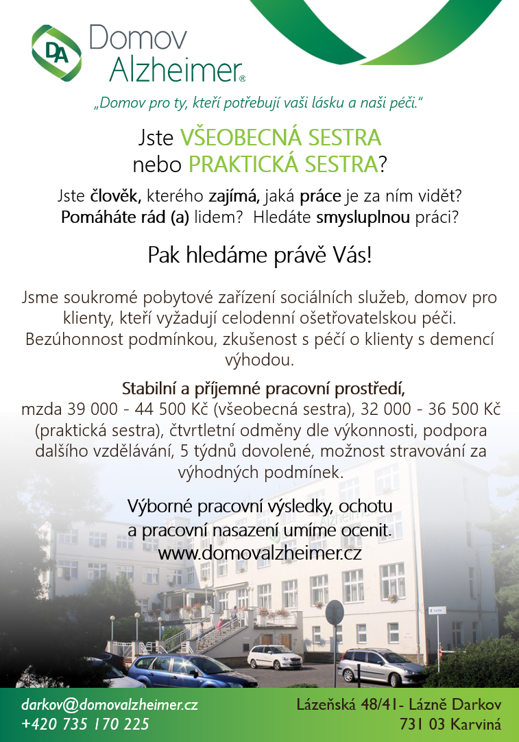 a) Domov Alzheimer Darkov z.ú., se sídlem Lázeňská 48/41, Lázně Darkov, 735 03 Karviná, IČ 024 96 470, zapsaný v rejstříku ústavů vedeném Krajským soudem v Ostravě, oddíl U, vložka 270
