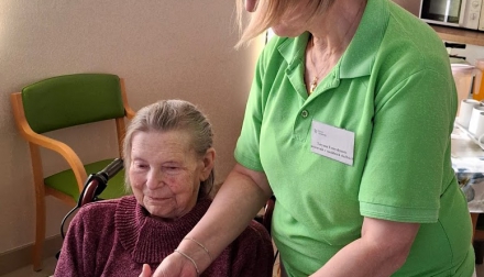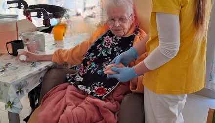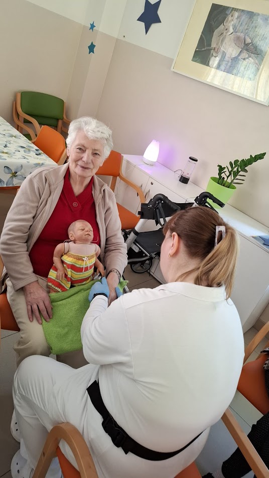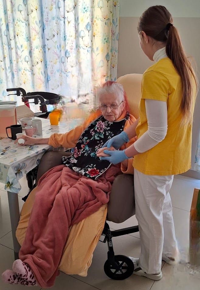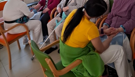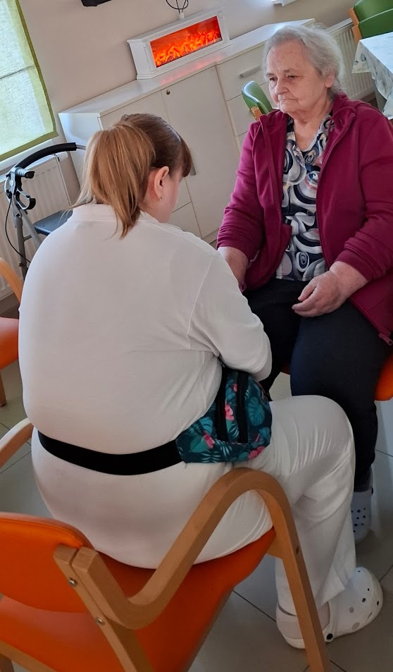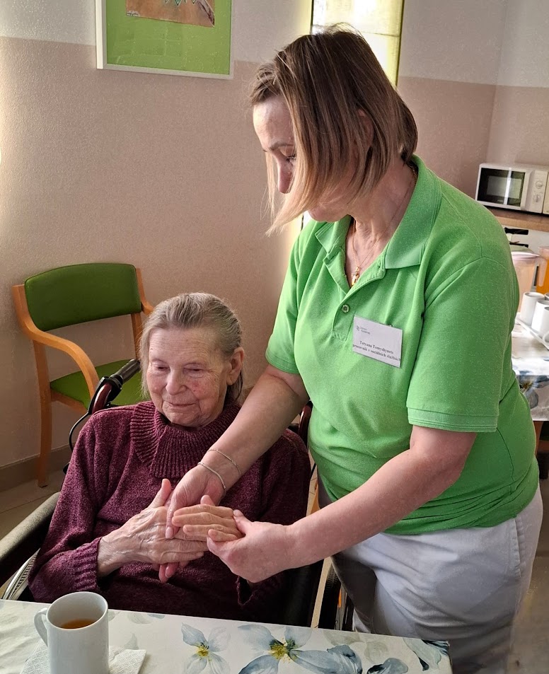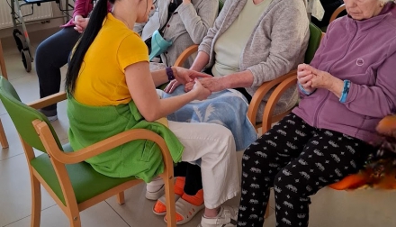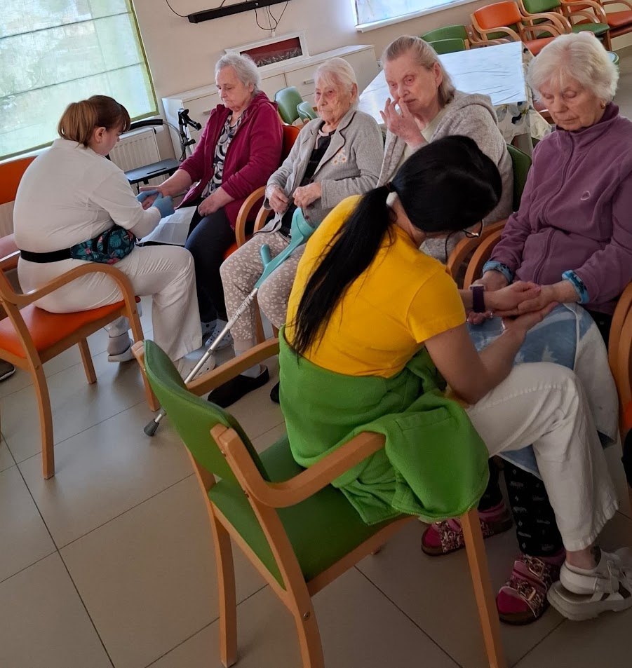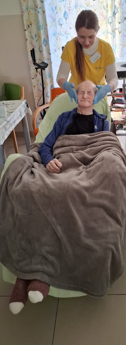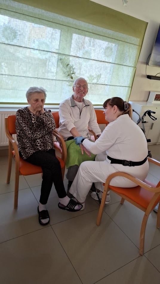 Součástí dopoledního programu byla také jemná masáž rukou a obličeje. Pečující personál přistupoval ke každému klientovi s individuální péčí. Doteky a vůně přinášely klientům uvolnění, úsměvy a viditelný pocit spokojenosti. Relaxační dopoledne se tak stalo příjemným zážitkem, který přispěl k celkové pohodě všech zúčastněných.