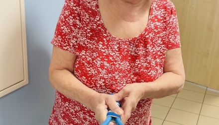 Klienti z pátého patra si čtvrteční dopoledne vyzkoušeli zábavné cvičení s balónky. Jejich úkolem bylo udržet balónek co nejdéle v rovnováze na pálce. Na první pohled jednoduchá aktivita se změnila ve veselou a napínavou výzvu.