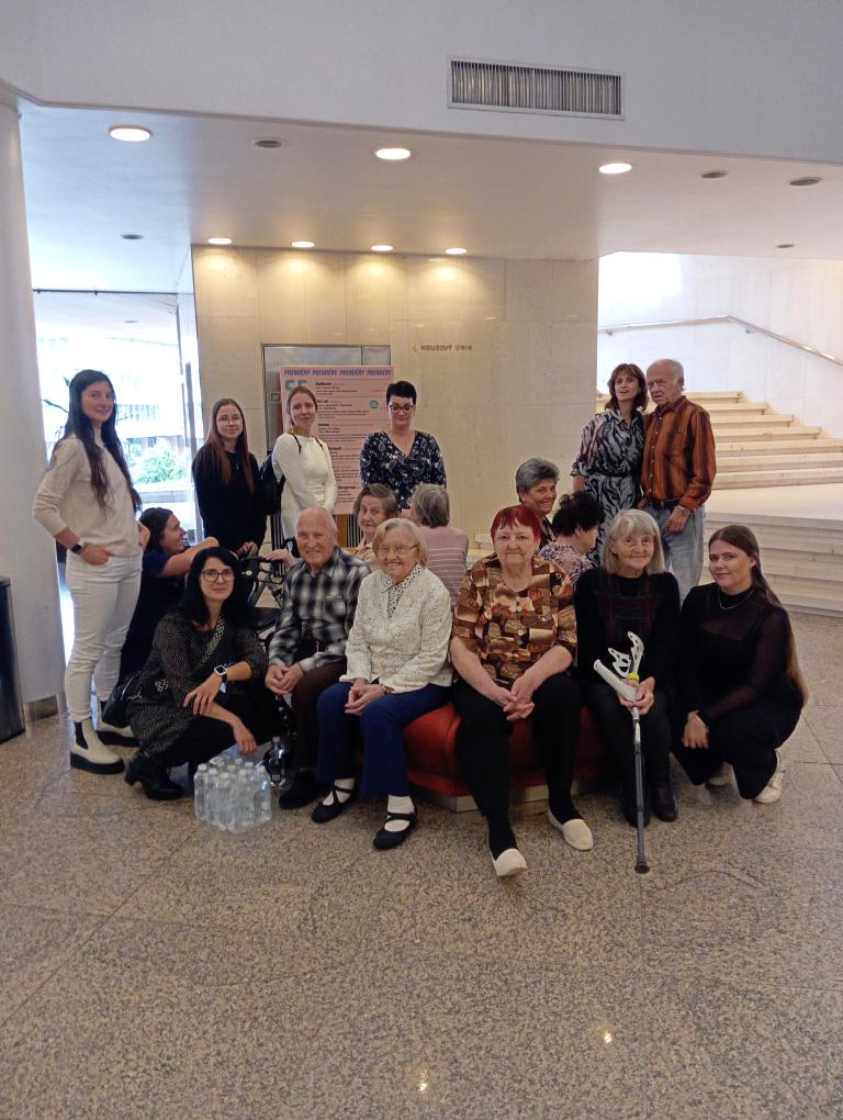 Na tvářích klientů se objevoval úsměv a občas i hlasitý smích. Společně prožívali každý okamžik hry a bavili se od začátku až do konce. Herci předvedli skvělé výkony, které všechny vtáhly do děje. Klienti se vzájemně povzbuzovali a sdíleli své dojmy, smích a radost byly cítit v celé skupině. Po představení si pak všichni zúčastnění vyměňovali své zážitky. Společně strávený čas přinesl nové, společné vzpomínky. Bylo to krásné zakončení dne. Do domova jsme se vraceli domů spokojení a s dobrou náladou.