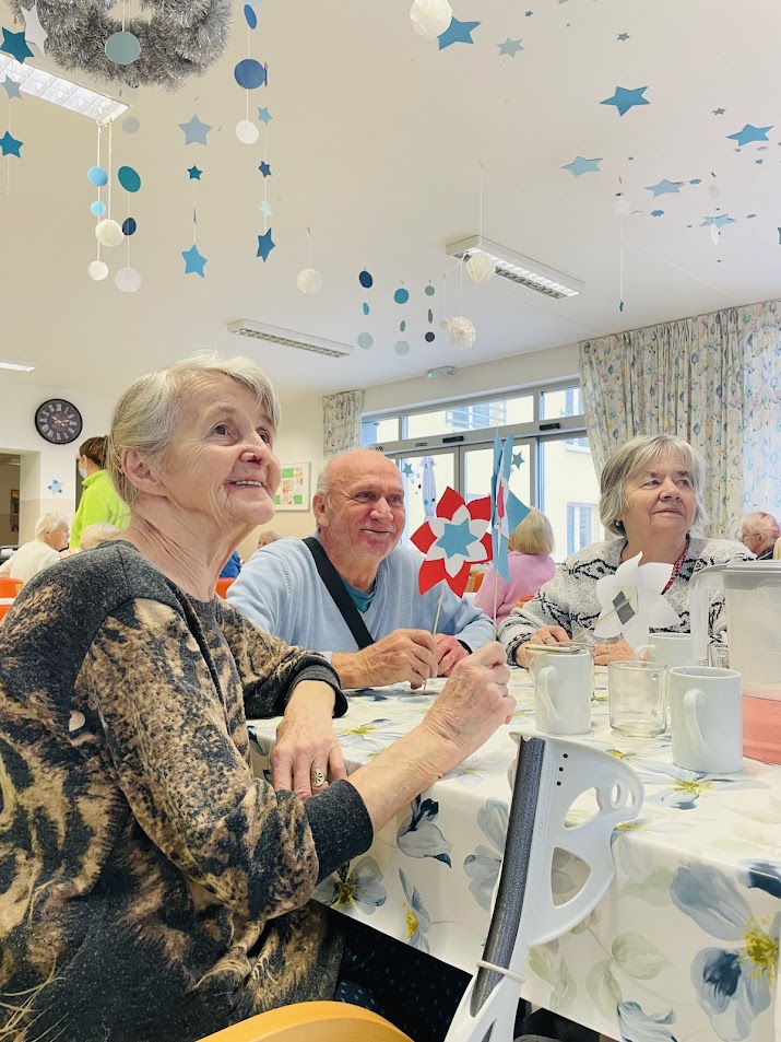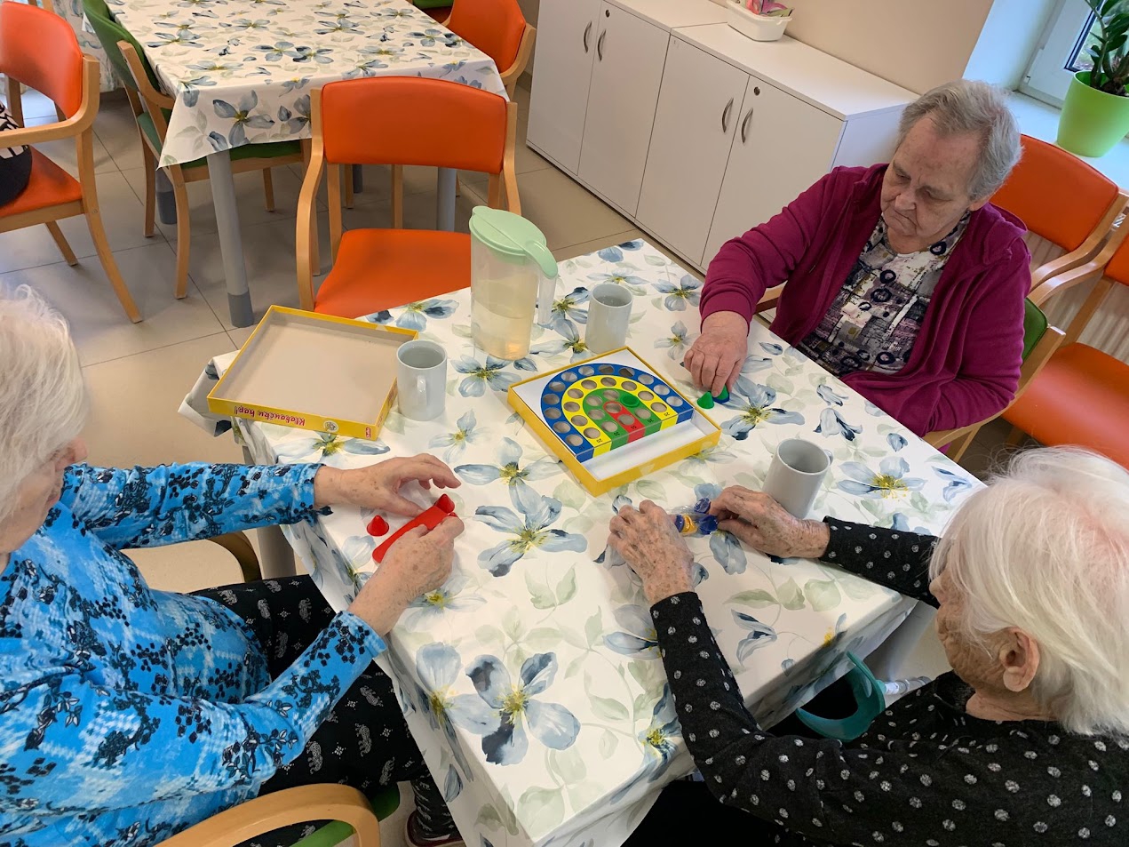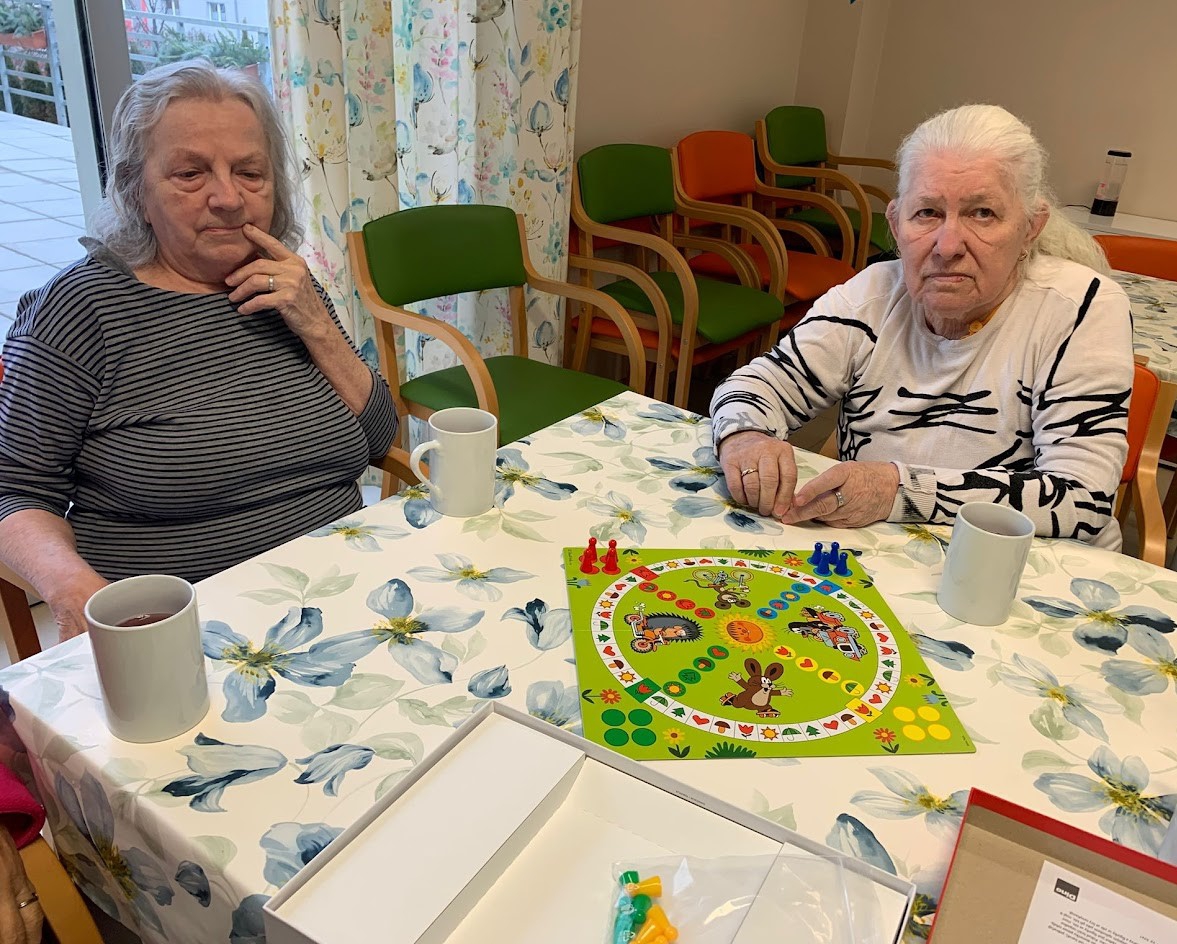 Nechyběla ani oblíbená stolní hra „Člověče, nezlob se ˮ, která přinesla napětí i úsměvné momenty. V dřívější aktivizaci, předešlého dne, si klienti vyrobili barevné větrníky a symbolicky fandili svým spoluhráčům.