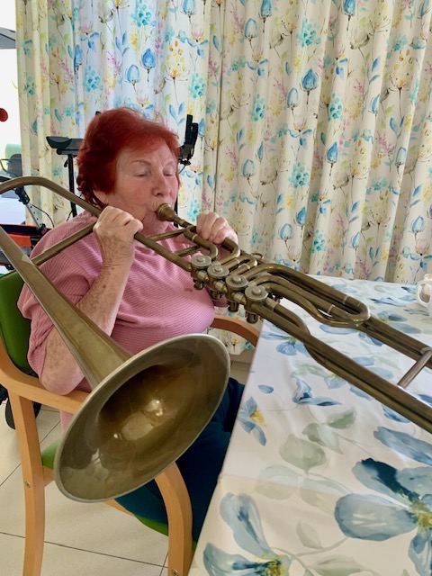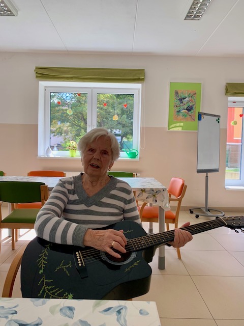 Páteční odpoledne se naši klienti zúčastnili hudebního kroužku, během kterého prožili krásné chvíle plné hudby, radosti a úsměvů. Měli možnost vyzkoušet si hru na různé hudební nástroje – kytaru, trombón, piano i flétnu. Každý si mohl nástroj osahat a zahrát si jednoduché tóny.