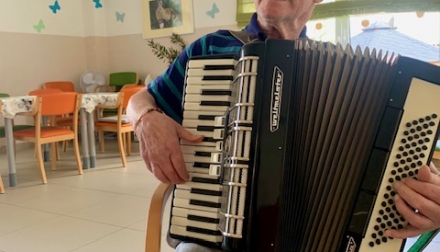 Na závěr došlo i na milé překvapení – jeden z našich klientů se chopil harmoniky a zahrál ostatním několik melodií. Jeho vystoupení sklidilo velký potlesk a připomnělo opravdový koncert.