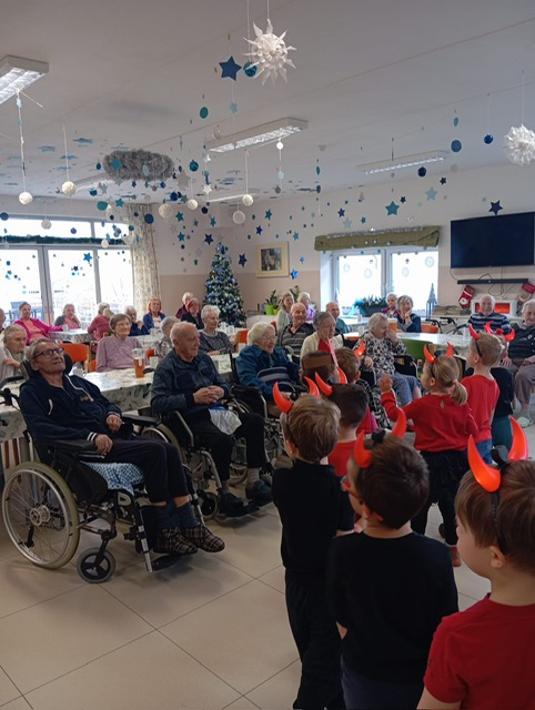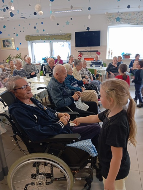 Senioři sledovali program s dojetím a úsměvy, které se postupně rozjasňovaly po celé místnosti. Děti zazpívaly tradiční koledy, zarecitovaly zimní básničky a předvedly taneční ukázku. Pro naše seniory měli připravené i drobné hudební nástroje, aby se mohli zapojit společně do vystoupení.