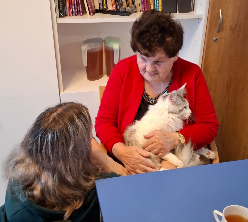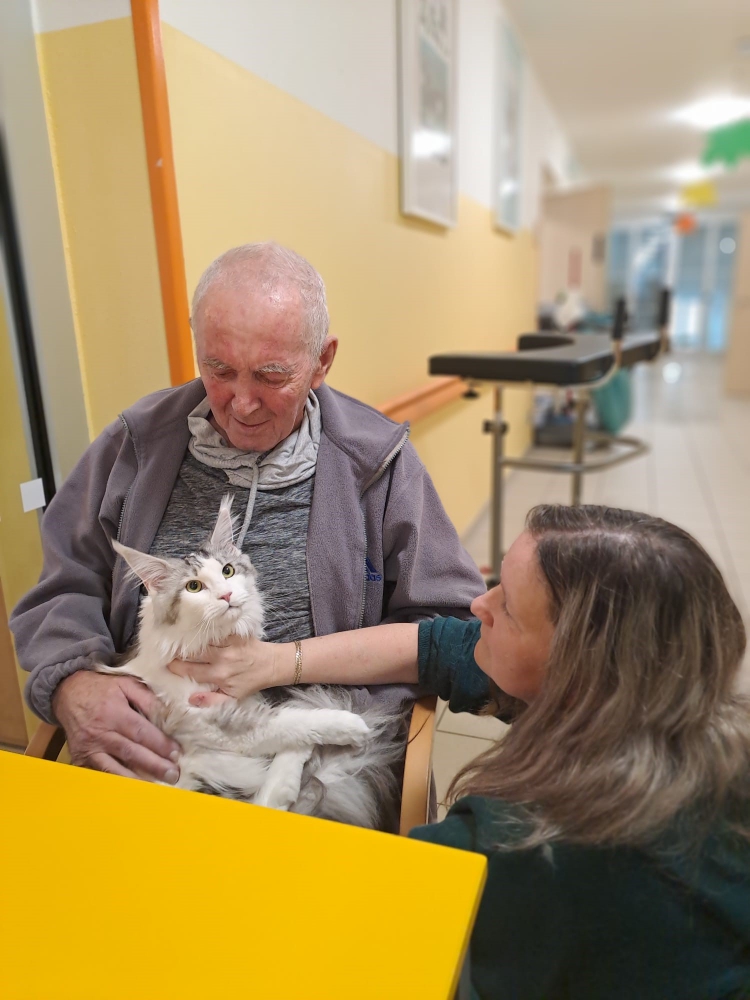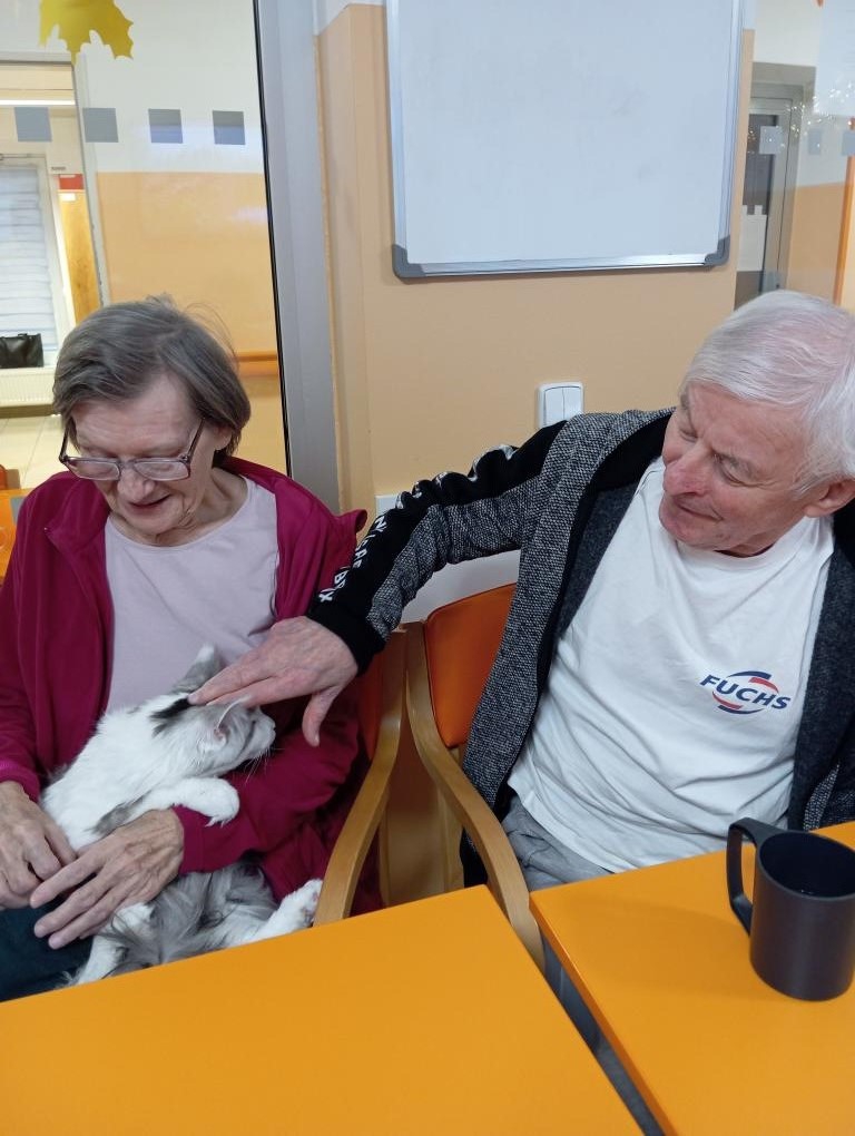Bylo vidět, že kontakt se zvířetem přináší klientům radost a uklidnění – na tvářích se objevovaly úsměvy a v očích se leskly vzpomínky na jejich vlastní kočičí či psí mazlíčky. Atmosféra byla po celou dobu příjemná a hřejivá.