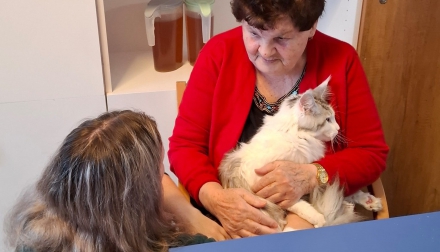 Setkání s Daisy se stalo krásným zpestřením dne. Děkujeme za milou návštěvu, která nám všem zvedla náladu, a už se těšíme, až kočičí společnost zavítá mezi nás znovu.