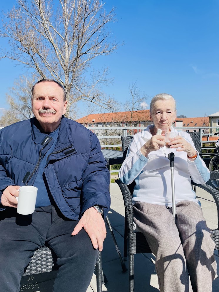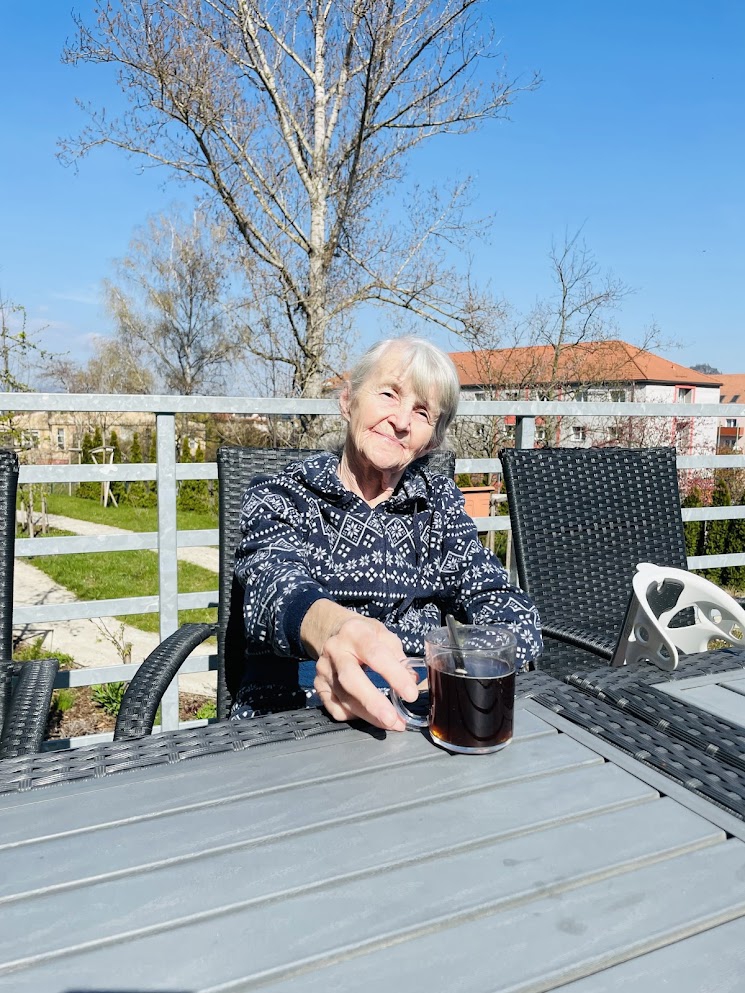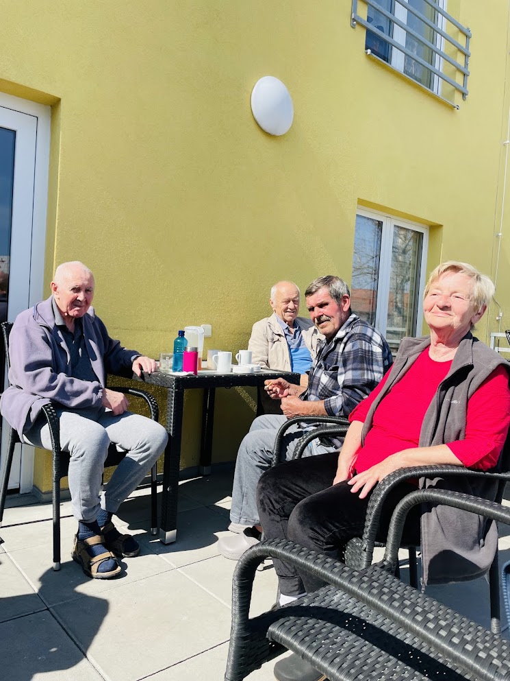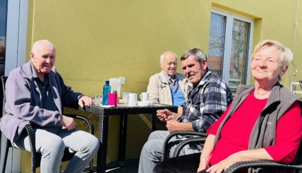 Káva doplnila chvíle pohody a klienti si při jejím popíjení příjemně odpočinuli. Smích a rozhovory se nesly terasou a přinášely radost všem zúčastněným. Slunečný den na terase byl malou oslavou jara a příjemným zpestřením běžného programu domova.