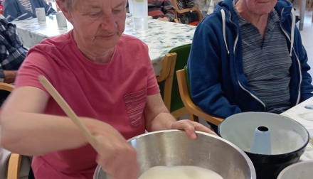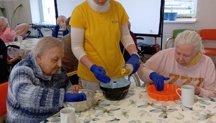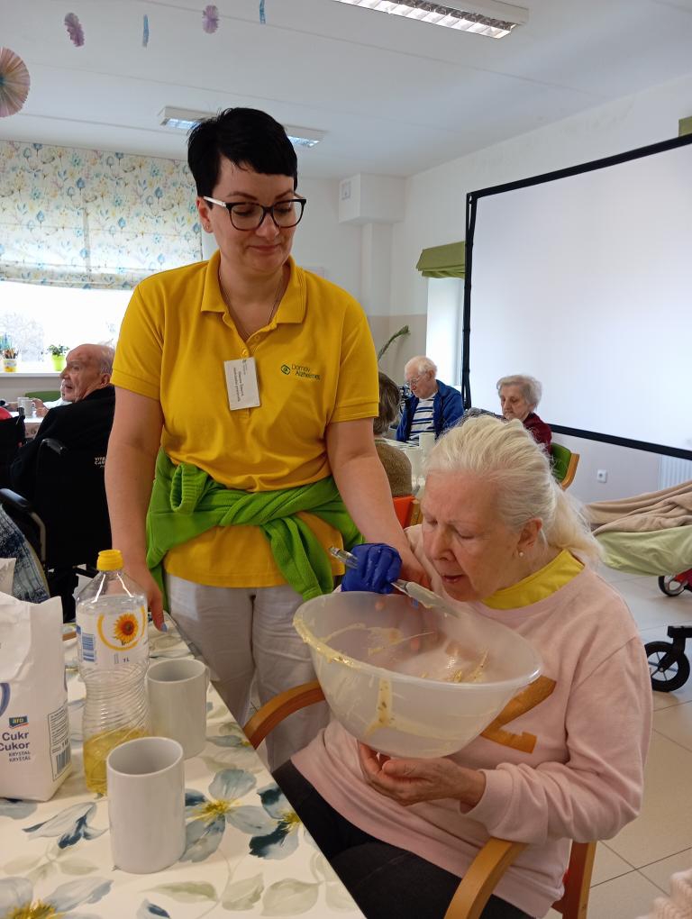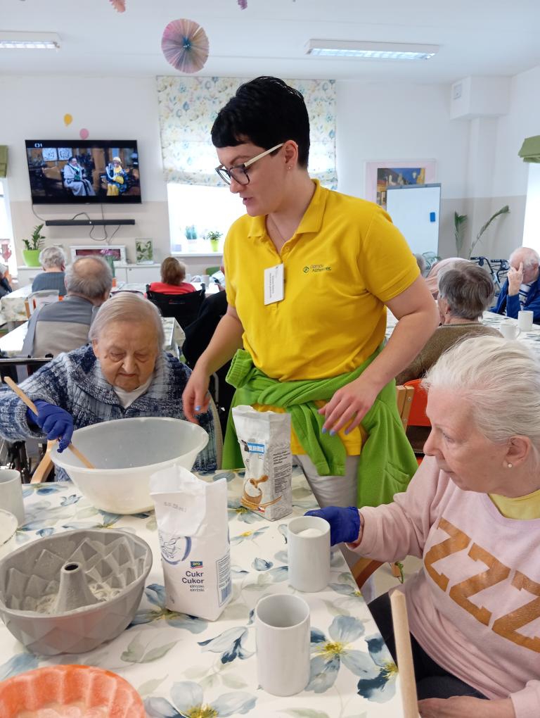 Konec pracovního týdne, pátek - jsme se v jídelně sešli a společně si užili pečení bábovek. Panovala pracovitá, pohodová nálada a každý se zapojil tak, jak mu to vyhovovalo.