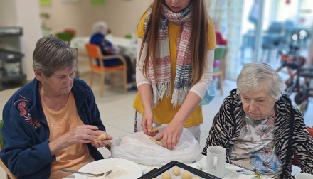 Těsta si klienti za pomoci našich šikovných aktivizačních pracovnic připravili už den předem, takže se mohli hned pustit do tvarování a pečení.