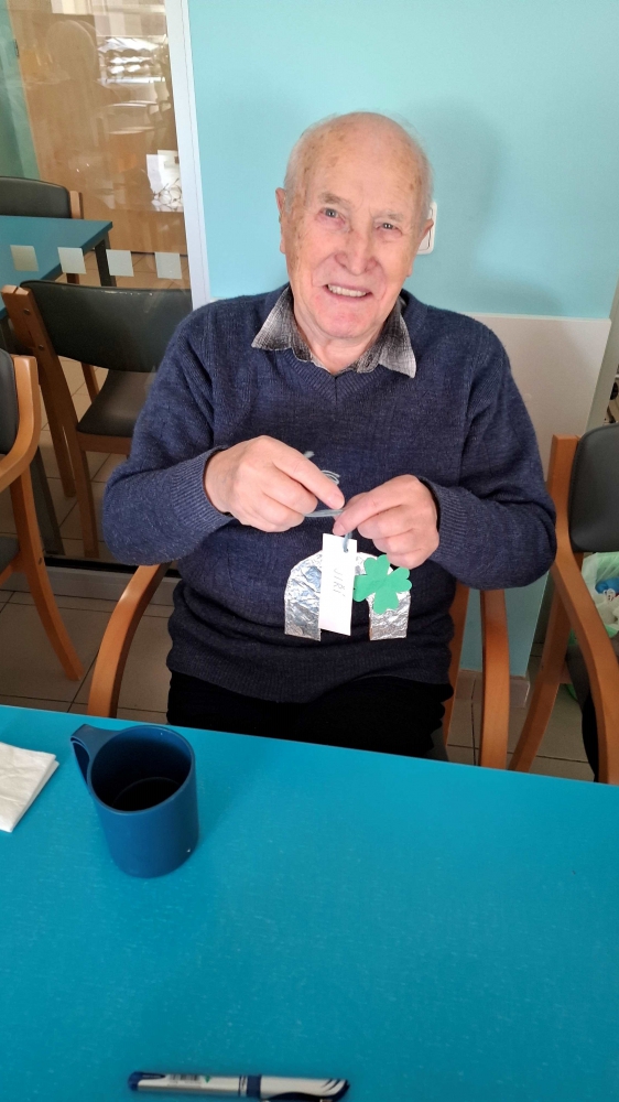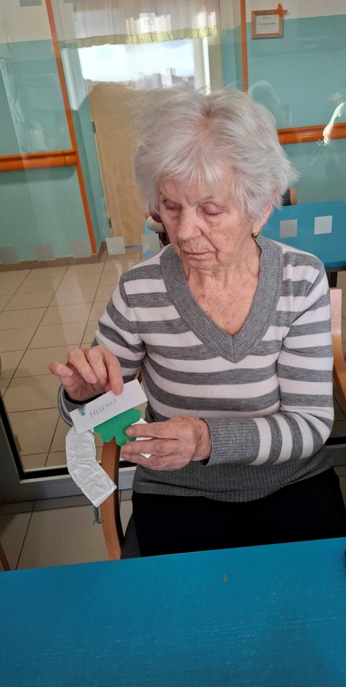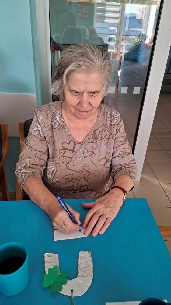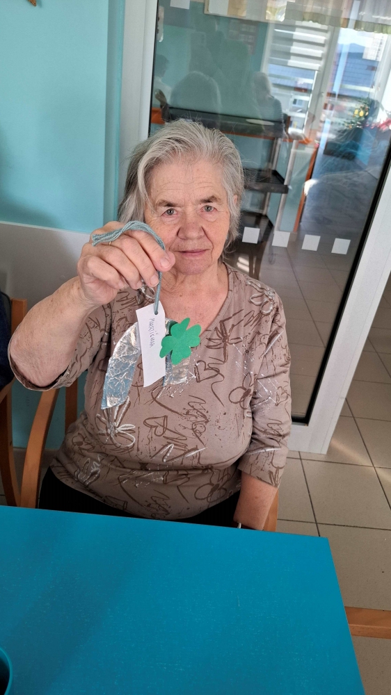 V úterý, den před Silvestrem, klienti v rámci dopolední aktivizace, tvořili PODKOVY ŠTĚSTÍ. Nejprve obalili kartonovou podkovu alobalem, čímž jí dodali slavnostní a lesklý vzhled. Následně podkovu ozdobili papírovým čtyřlístkem, který symbolizuje štěstí, a doplnili ji papírkem se svým jménem, díky čemuž byl každý výrobek originální.