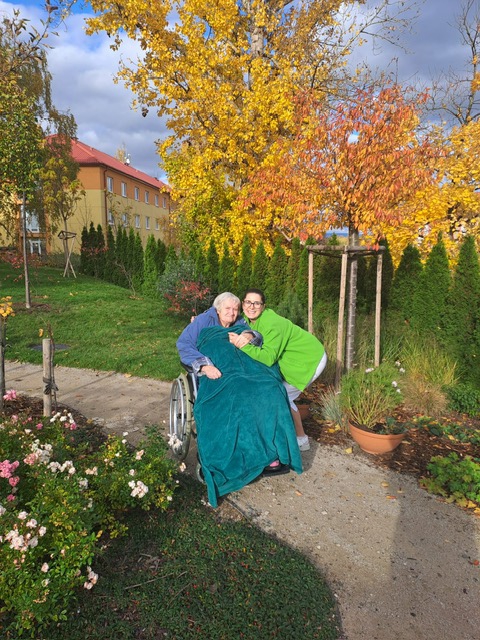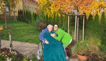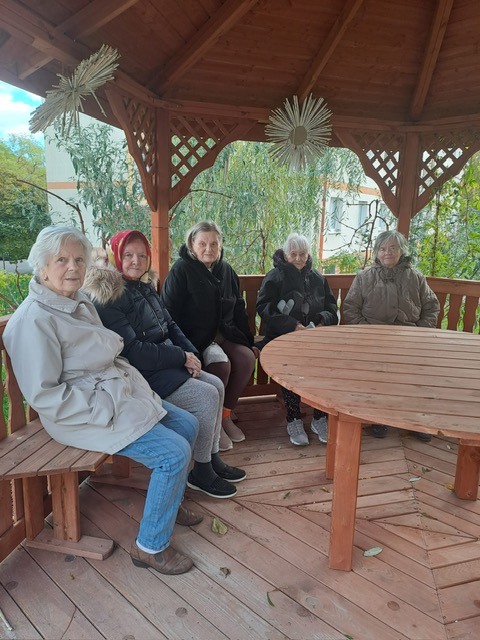Ve středu odpoledne se naši klienti vydali na příjemnou vycházku po zahradě. Počasí jim přálo, slunce svítilo a vzduch byl svěží. Společně si prohlédli květiny, dýňovou výzdobu na záhonech a barevné listy podzimních stromů.