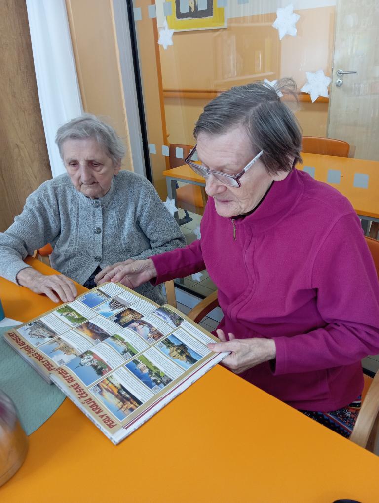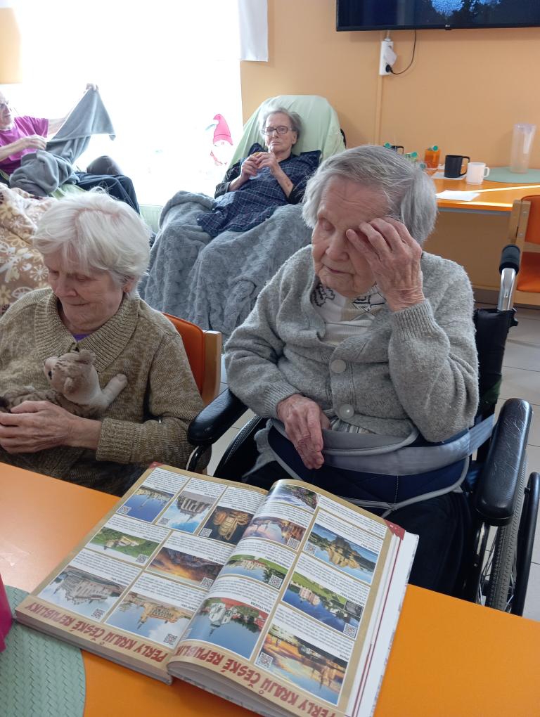 Na druhém patře, první den v týdnu, jsme se sešli v naší aktivizační místnosti, kde se dopolední setkání neslo v duchu knih, které jsme obdrželi k Vánocům. Tyto nové knihy nám už od prvních chvil přinášejí velkou radost a staly se krásným zpestřením stráveného času.