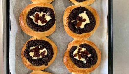Těsto bylo tak velké až přetékalo z mísy, což jen zvyšovalo nadšení všech zúčastněných. Každý se zapojil – někdo válel těsto, jiný připravoval náplně z jahodového džemu, tvarohu či máku. Nechyběly ani namočené rozinky v rumu, které koláčkům dodaly zvláštní šmrnc.