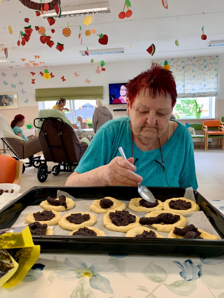 Vůně čerstvých koláčů se linula celým domovem a lákala i zaměstnance, kteří se rádi přišli podívat na naši společnou práci. Každý koláč byl jedinečný, protože klienti ho zdobili podle vlastní fantazie, čímž vznikaly originální a krásné výtvory.