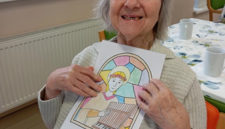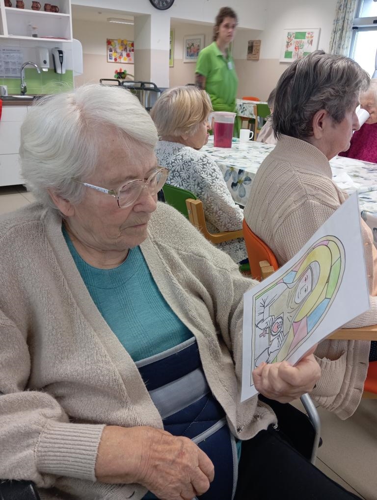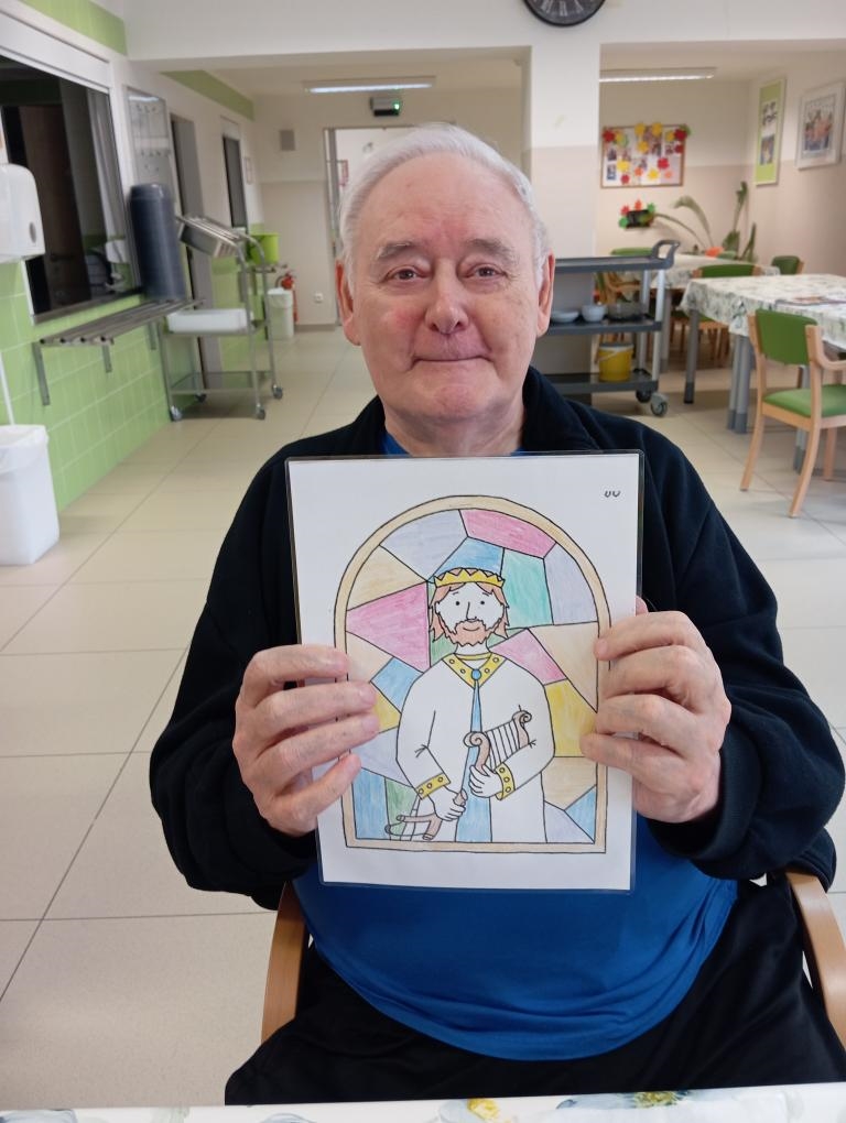 Obrázky ve vitrážovém stylu dodaly celému setkání krásnou a slavnostní atmosféru. Barevné motivy připomínaly okna starých kostelů, která jsme někteří dobře znali z mládí. Mnozí z nich s úsměvem vzpomínali na své první mše, kterých se účastnili s rodiči či prarodiči. Další sdíleli zážitky z poutí a návštěv významných kostelů. Diskutovali jsme také o tom, jak se kostely měnily v průběhu let. Klienti si navzájem předávali své vzpomínky a zkušenosti. Celé dopoledne se neslo v duchu tradic a hlubokého porozumění. Setkání nám připomnělo, jak důležité je uchovávat kulturní i duchovní dědictví naší země.