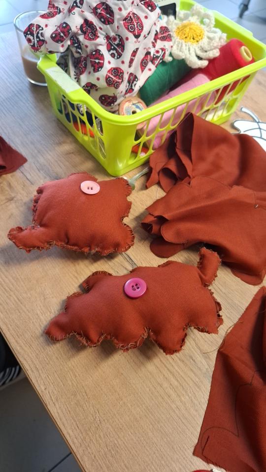 Je tu nový týden, pondělí a s klienty jsme se pustili do podzimní dekorace z látek. Postup byl jednoduchý – nejprve jsme si na látku obkreslili tvar listů, které jsme vystřihli, sešili, naplnili dutým vláknem, a nakonec ozdobili knoflíkem.