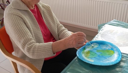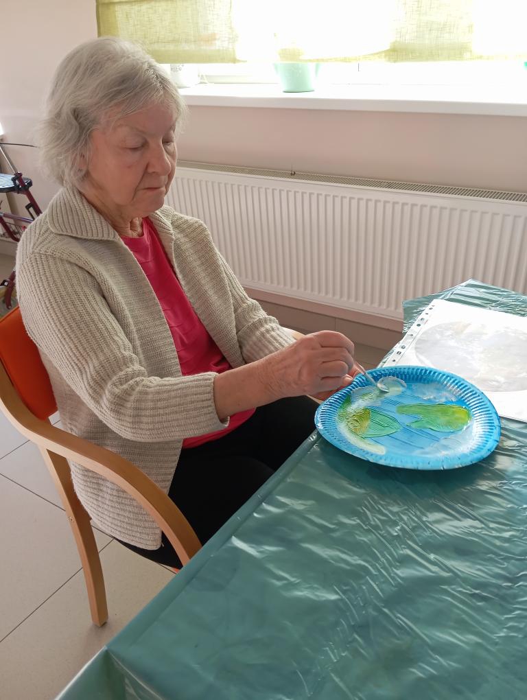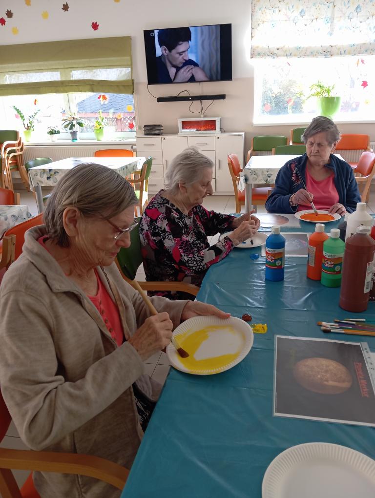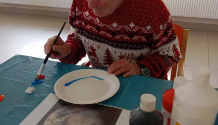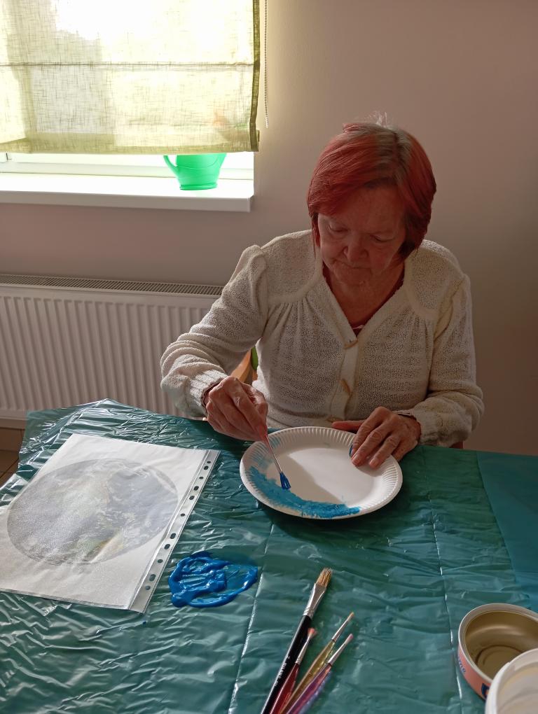 Dnešní Páteční dopoledne se klienti věnovali tvořivé aktivitě, při které malovali na papírové talíře planety Země. Každý si vybral barvu a pustil se s chutí a s tvořivostí sobě vlastní do práce. Někteří vytvořili Zemi s modrými oceány a zelenými kontinenty, jiní zase zářivý Mars či tajemný Saturn s prstenci.