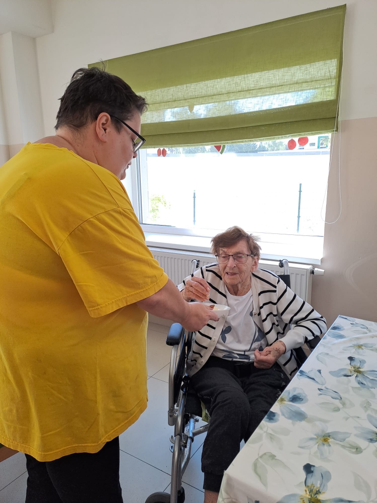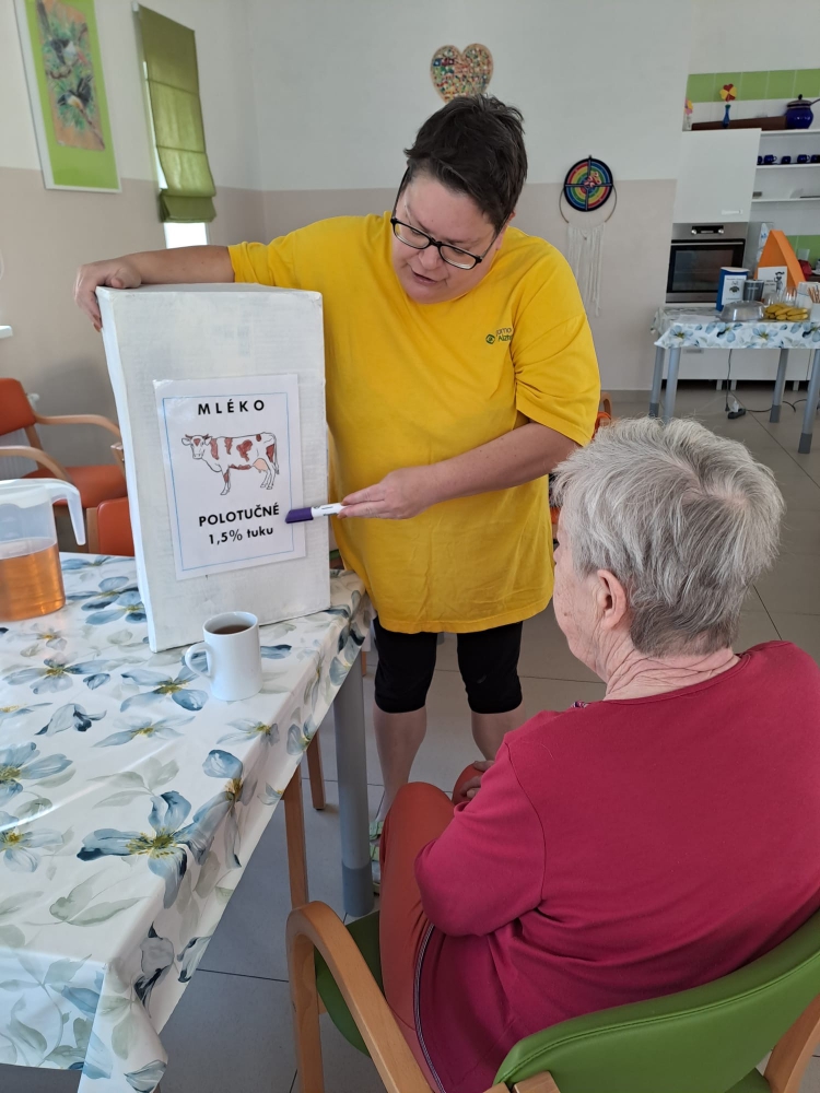 Každý z klientů se aktivně zapojil do přípravy - někdo přidával ovoce, jiný doléval mléko nebo pomáhal s mixováním. Společnými silami jsme vytvořili koktejl, který sklidil úspěch u všech přítomných. Při popíjení se rozproudila příjemná konverzace. Zavzpomínali jsme na dětství, kdy se chodilo s konvičkou pro čerstvé mléko k babičce nebo přímo na statek. Mléko tehdy chutnalo jinak - možná trochu sladčeji a spíše proto, že bylo součástí hezkých vzpomínek. Nezůstalo ale jen u minulosti. Povídali jsme si i o tom, jaké druhy mléka jsou dnes běžně dostupné - od klasického kravského až po rostlinné alternativy, jako je ovesné, mandlové nebo sójové. Mluvili jsme také o tom, co všechno se dá z mléka vyrobit - od jogurtů a sýrů až po domácí tvaroh či máslo. Součástí našeho setkání byla i malá ochutnávka sýrů, která všechny příjemně překvapila.