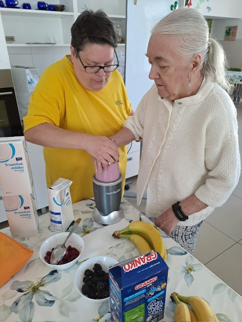 Ve čtvrtek jsme si s našimi klienty zpříjemnili den společnou výrobou mléčných koktejlů. Hlavními ingrediencemi tentokrát byly maliny a ostružiny, které jsme rozmixovali s mlékem do lahodného nápoje.