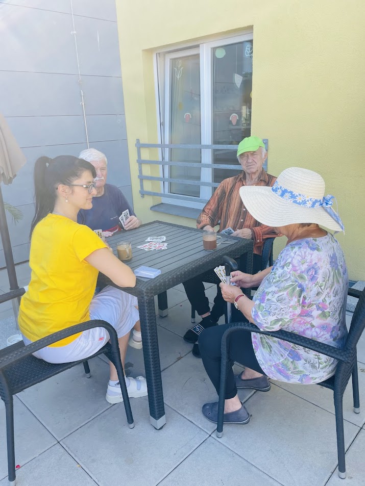 V pátek jsme v našem domově opět prožili zábavné odpoledne, které nabídlo hned dvě oblíbené aktivity. Jedna skupina obyvatel se s chutí pustila do karetní hry Prší, která vzbudila velké nadšení. Karty se rychle střídaly v rukou a nechyběly taktické tahy ani veselý smích, když někomu padla sedmička.