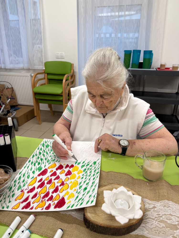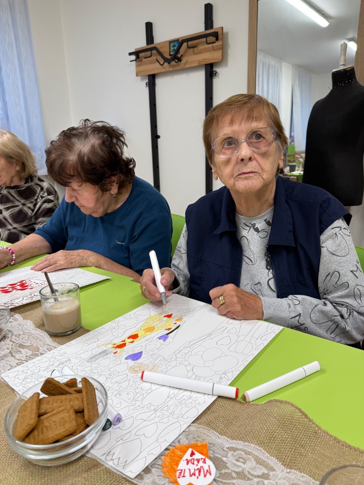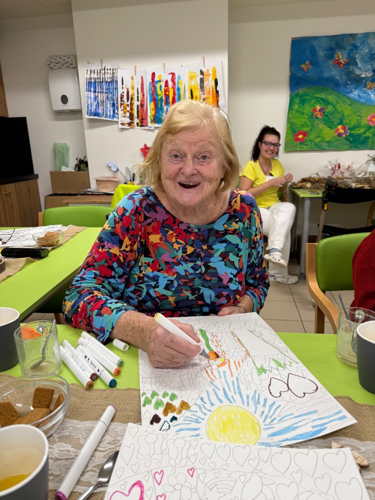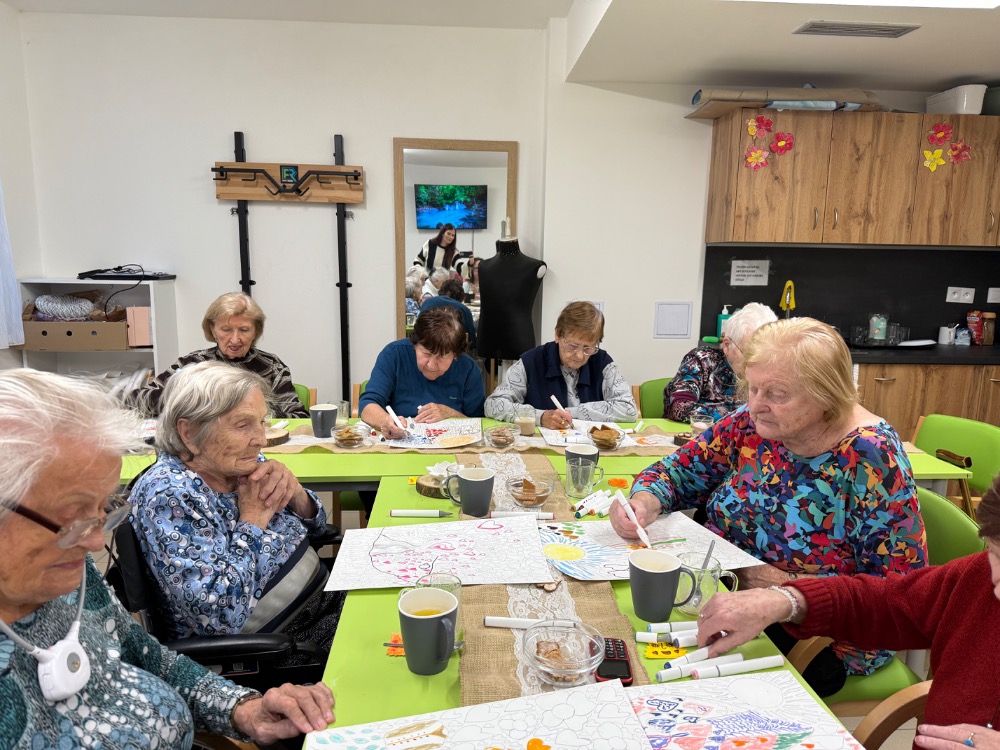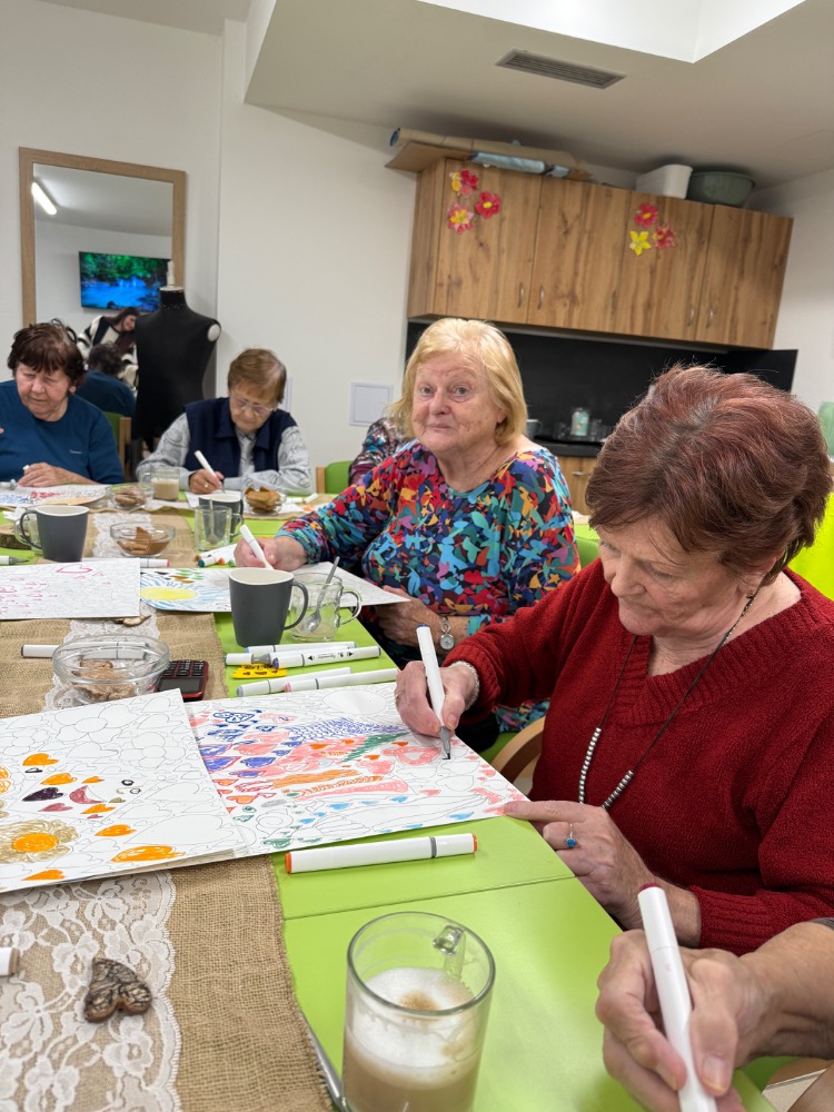 Dámský klub byl výjimečný, nepřišla k nám terapeutka, umělkyně ani lektorka. Přišla Evička - křehká duše s několika handicapy, ale s obrovským srdcem. Maluje energetické obrázky a tentokrát přinesla své barvy i k nám. Připravila pro naše klientky vlastní předlohy a spolu s nimi tvořila, povzbuzovala je a rozdávala úsměvy.
