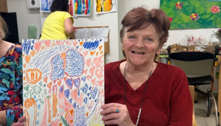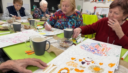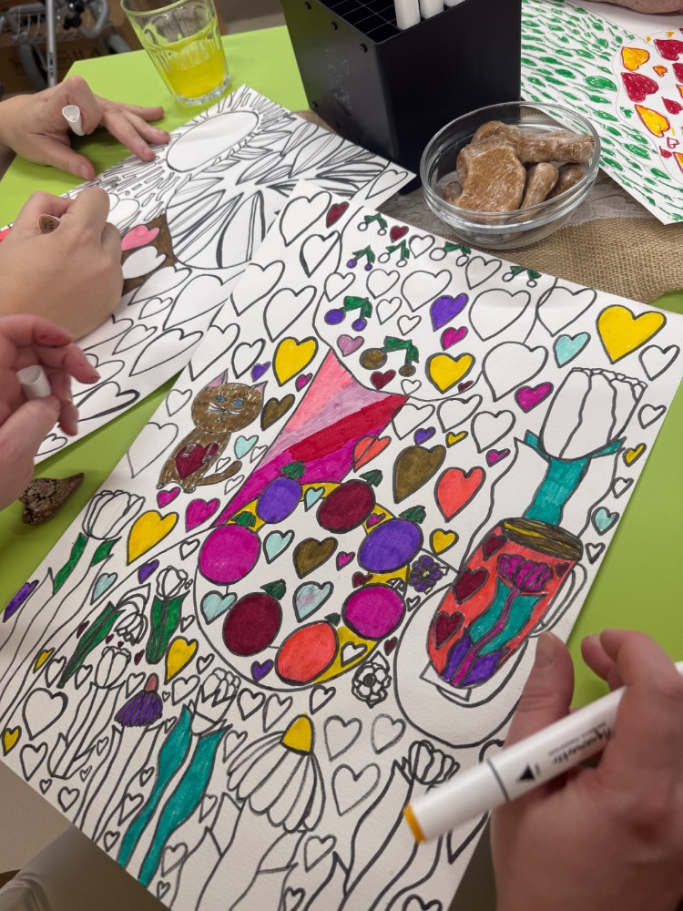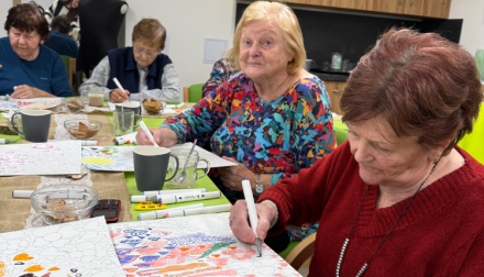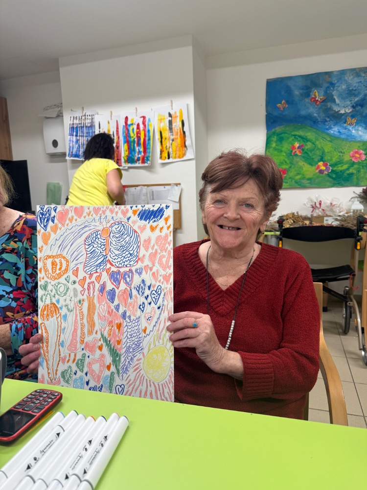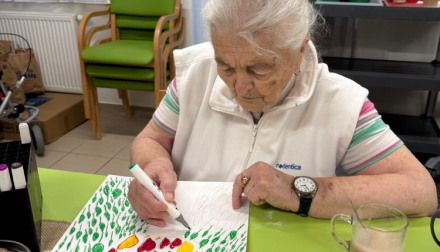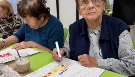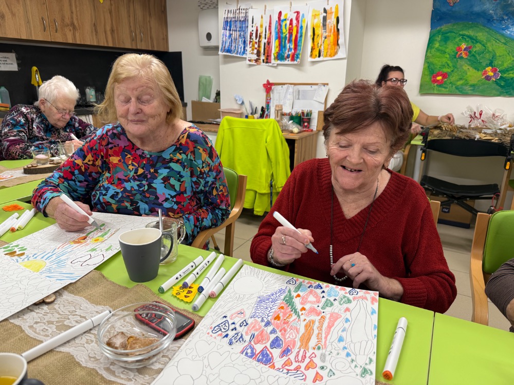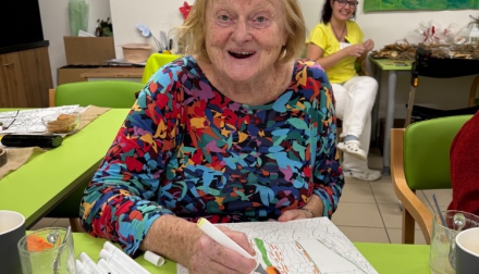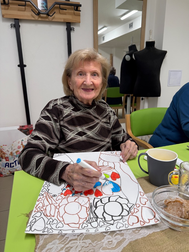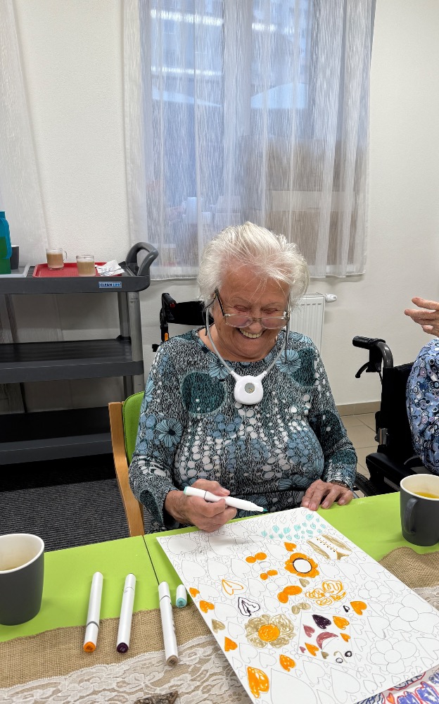 Dámský klub byl výjimečný, nepřišla k nám terapeutka, umělkyně ani lektorka. Přišla Evička - křehká duše s několika handicapy, ale s obrovským srdcem. Maluje energetické obrázky a tentokrát přinesla své barvy i k nám. Připravila pro naše klientky vlastní předlohy a spolu s nimi tvořila, povzbuzovala je a rozdávala úsměvy.